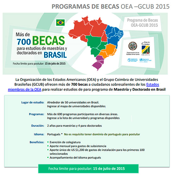 Programa de becas para estudiar una maestría o doctorado en Brasil (OEA - GCUB 2015)