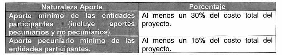 - El porcentaje restante para completar el costo total del proyecto, deberá ser aportado según el siguiente detalle: