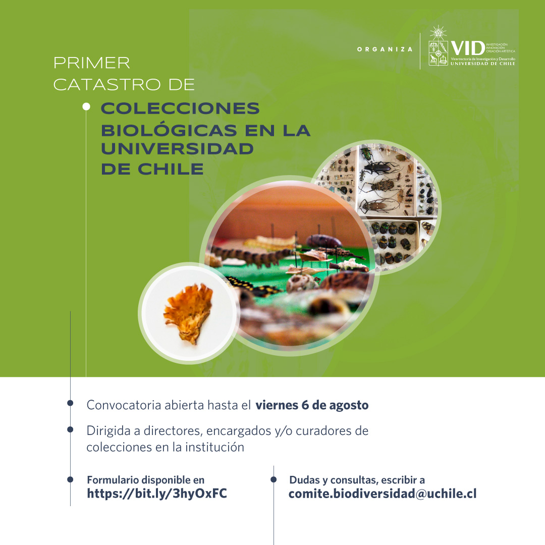 Frente a este contexto, el Comité de Diversidad Biológica coordinado por la Vicerrectoría de Investigación y Desarrollo (VID), propone abordar esta problemática mediante la elaboración del "Primer Catastro de las Colecciones Biológicas de la U. de Chile (CB-UCh)", que considerará a una colección biológica como un conjunto de materiales preservados de origen vivo.