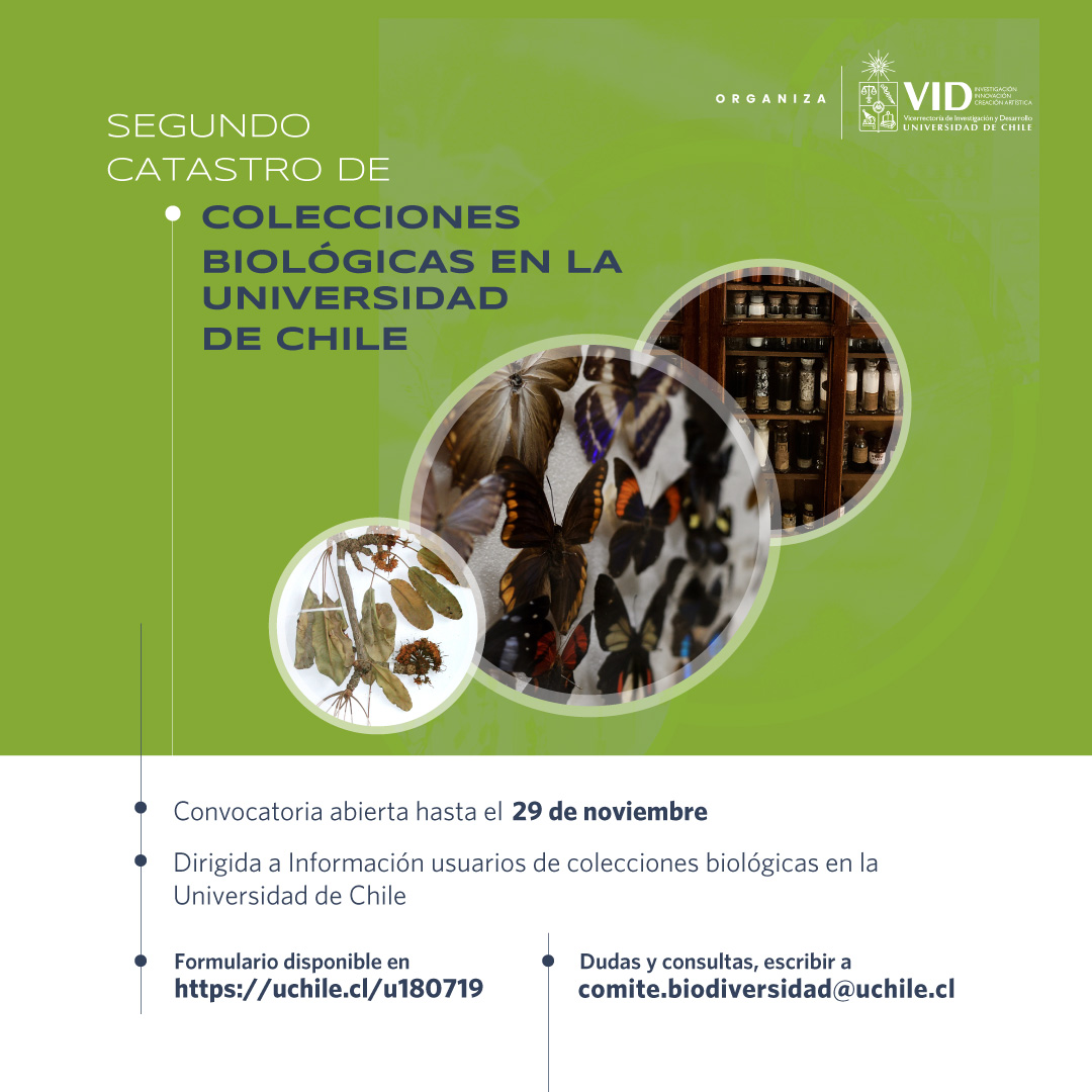 Bajo este contexto, el Comité de Diversidad Biológica de la Vicerrectoría de Investigación y Desarrollo (VID), ha iniciado un catastro a los usuarios(as) de colecciones biológicas de la Universidad de Chile.