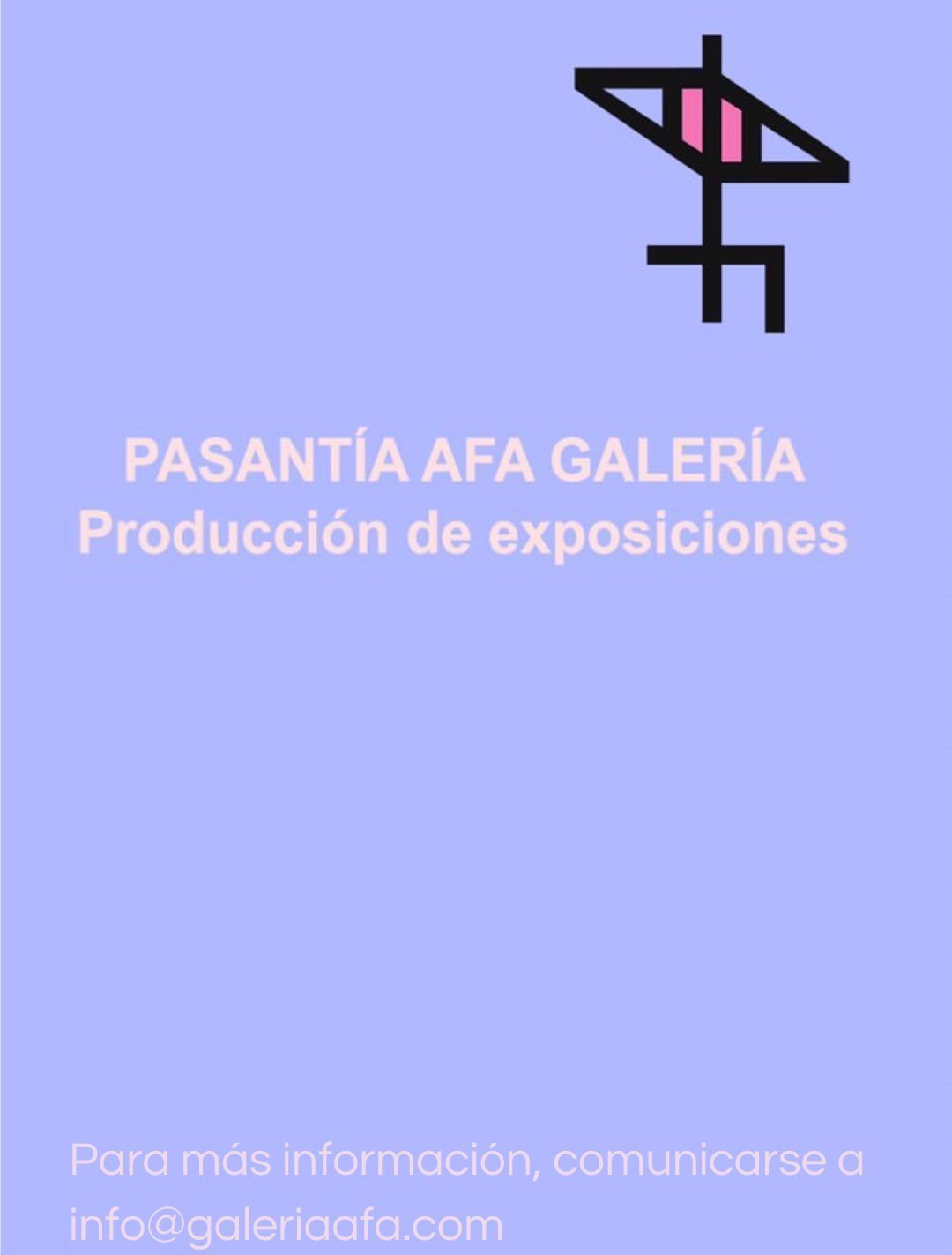 Los y las interesados/as en la pasantía deben enviar CV y portafolio de trabajo al correo natalia@galeriaafa.com con asunto “PASANTÍA AFA GALERÍA”.
