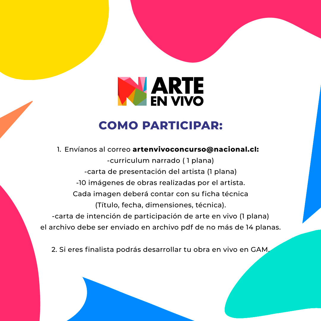 La versión 31° del Concurso “Arte en Vivo” para este año 2023, ha querido mantener la esencia del concurso, en donde los artistas seleccionados interactúen con el público, abriendo sus procesos creativos por un periodo de 03 días, en el Centro Cultural Gabriela Mistral (GAM).