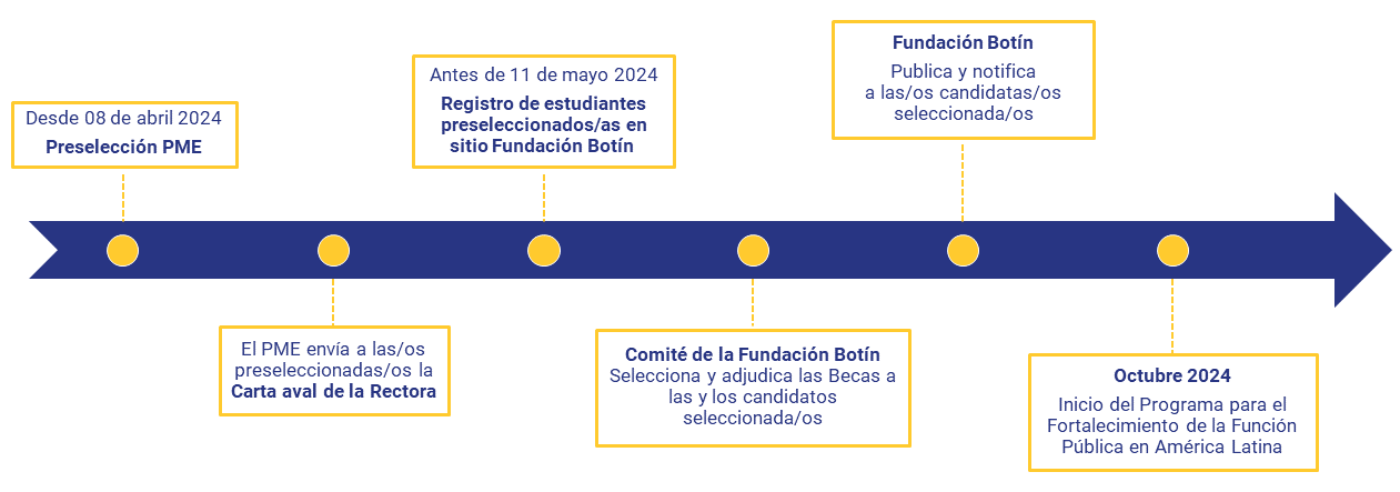 - El Programa de Movilidad Estudiantil - PME abre el proceso de preselección hasta el 8 de abril de 2024, que culminará con la selección final realizada por la Fundación Botín y la publicación de la lista de los estudiantes seleccionados.