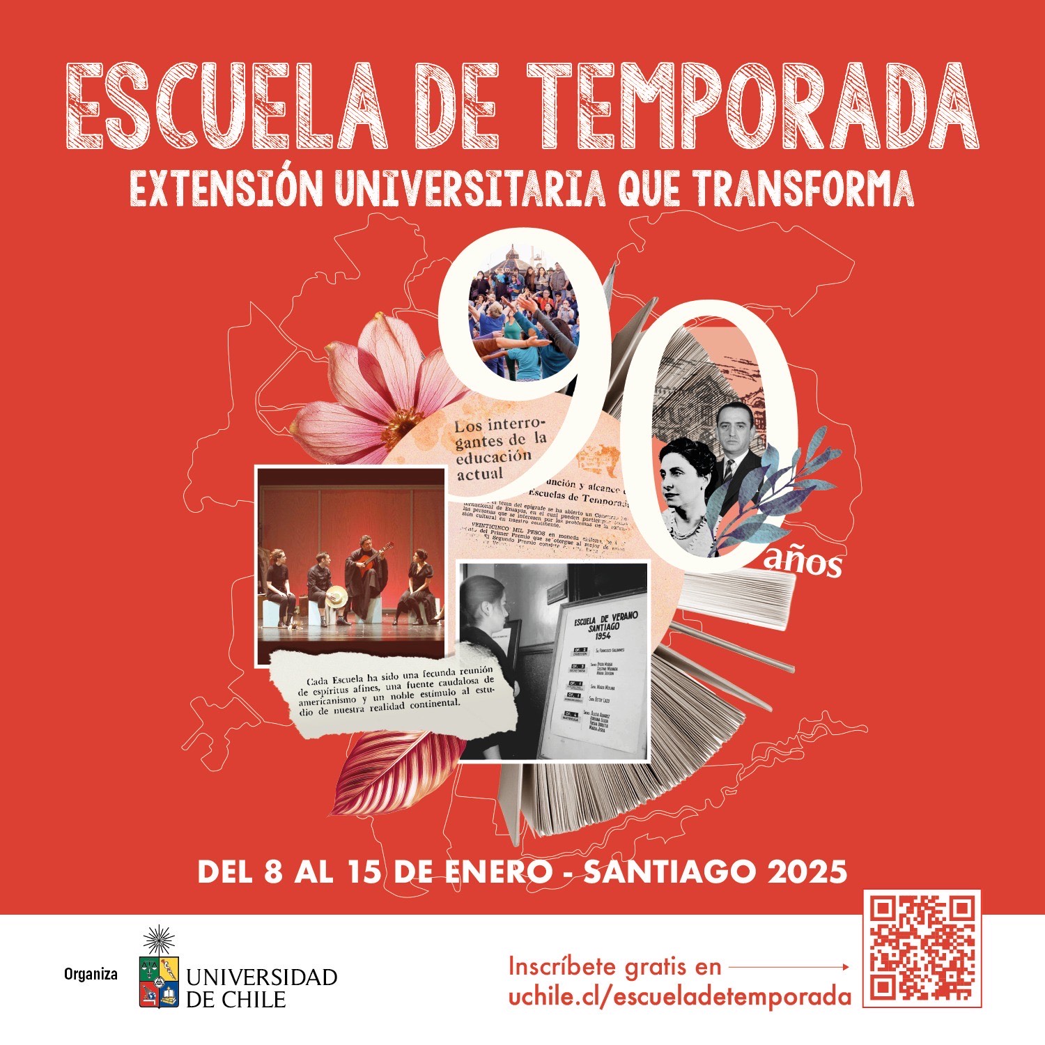Súmate a la Escuela de Temporada que la Universidad de Chile realizará entre el 8 y el 15 de enero en Santiago. Son más de 60 actividades gratuitas, abiertas a todas y todos, que celebran los 90 años de una extensión que transforma.