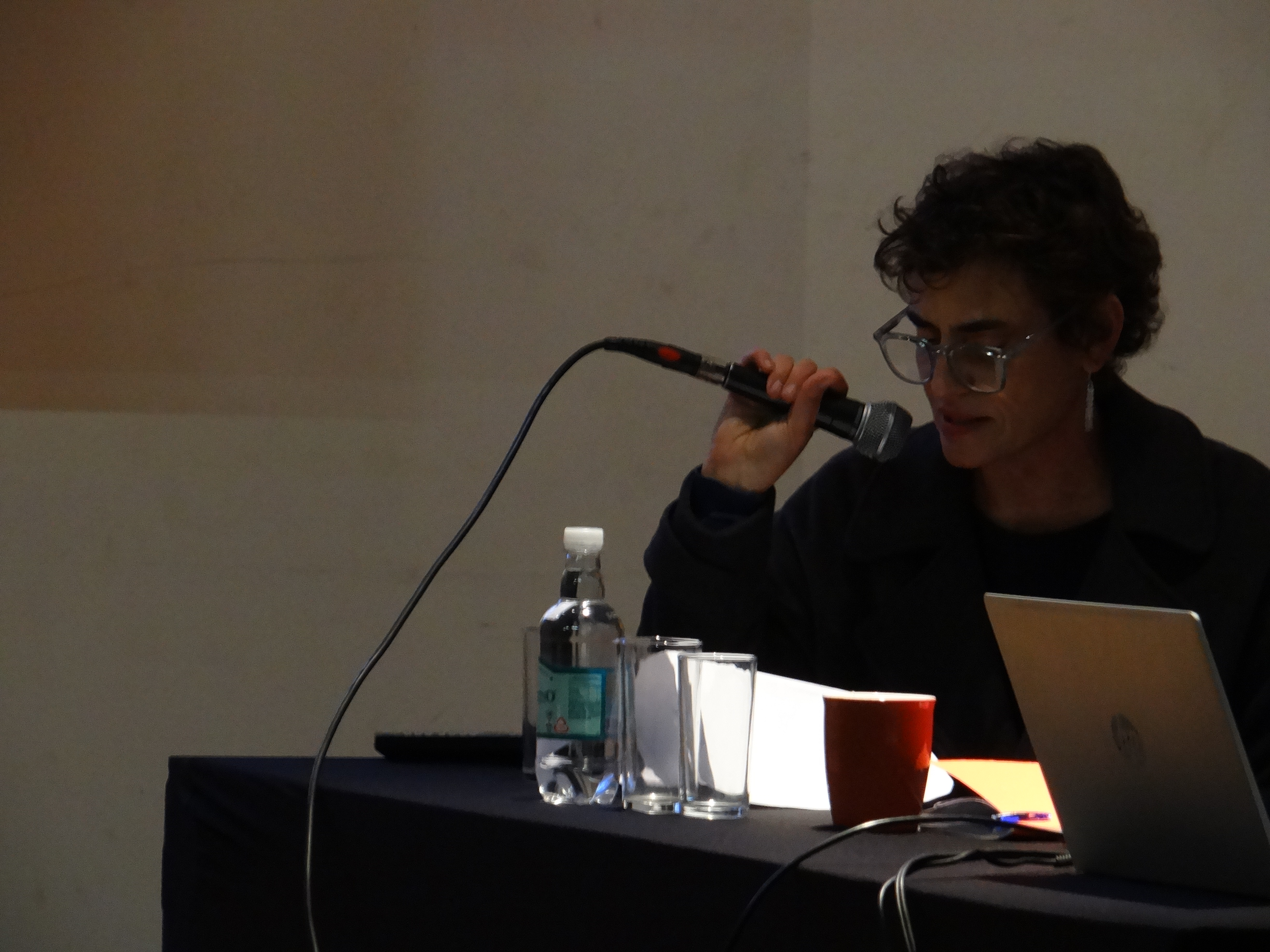 Moderada por la artista Voluspa Jarpa, en esta instancia se profundizó en el vínculo entre el arte y la política, desde su condición a-gramatical, como una forma de politicidad desconocida, censurada y ligada al devenir histórico de las mujeres y que es nombrada por la autora, como una politicidad de cuño femenino.