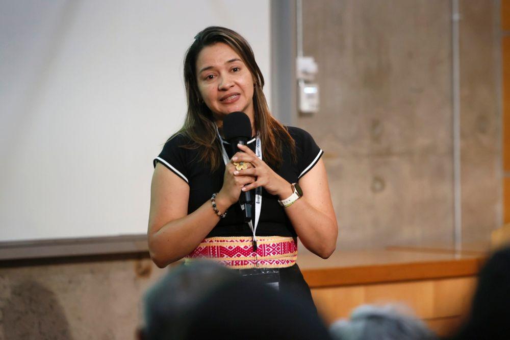 Y para entender y avanzar en estos conocimientos, la actividad central de esta bienvenida fue la charla magistral de la profesora Diana Monsalve, directora del Programa de Licenciatura en Pedagogía de la Madre Tierra de la Universidad de Antioquia, quien contó la historia, experiencia y desarrollo que ha tenido esta carrera universitaria en Colombia, la que nació gracias a “larga lucha” que han dado los pueblos indígenas por más de cincuenta años en dicho país.
