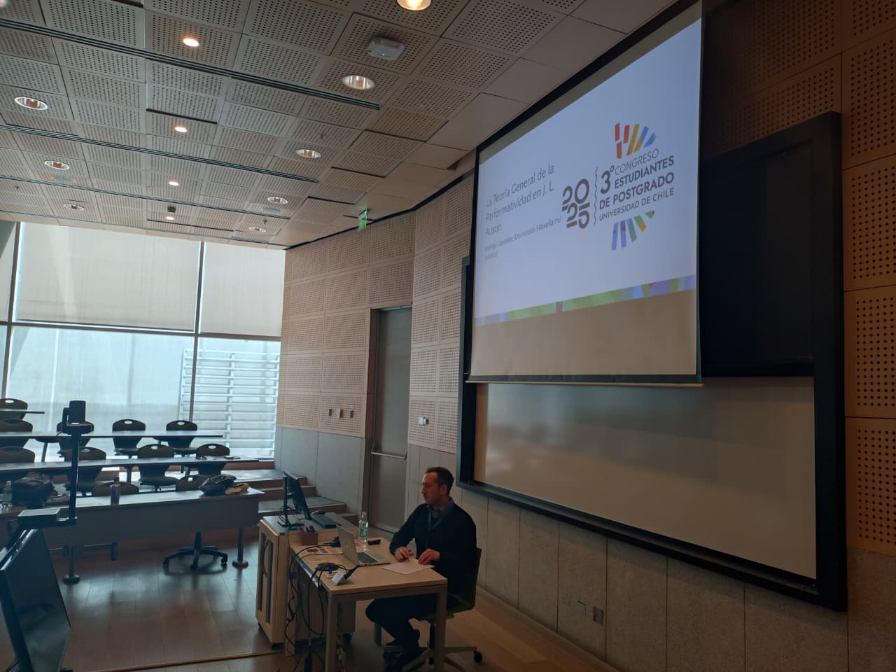 Los y las estudiantes del programa de Doctorado en Filosofía, con mención en Estética y Teoría del Arte, presentaron diversas propuestas de investigaciones y reflexiones vinculadas al quehacer artístico, tituladas: Teoría general de la performatividad en J. L. Austin, a cargo del estudiante Rodrigo González, Necropolítica, ecocidio y género en el Sur Global: violencias y desterritorialización, exposición de Paz Caro y Alteridades y Vínculos Biodiversos en la poesía escrita por mujeres de la Grecia Antigua, presentación de Tamara Orellana y Cuerpo y performatividad: convergencia entre vulnerabilidad y resistencia de Constanza Navarrete.