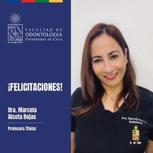 -La Prof. Dra. Marcela Alcota Rojas por su ascenso en la Jerarquía Académica a Profesora Titular de la Universidad de Chile.