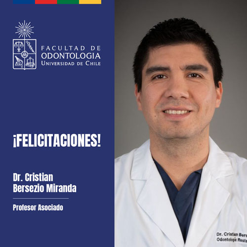 El Dr. Bersezio es académico del Departamento de Odontología Restauradora, de la Facultad de Odontología de la Universidad de Chile; Cirujano Dentista Universidad de Chile (2011); Doctor en Ciencias Odontológicas, Universidad Estadual Paulista “Júlio de Mesquita Filho” UNESP (2016); Especialista en Rehabilitación Oral, Universidad de los Andes (2021).
