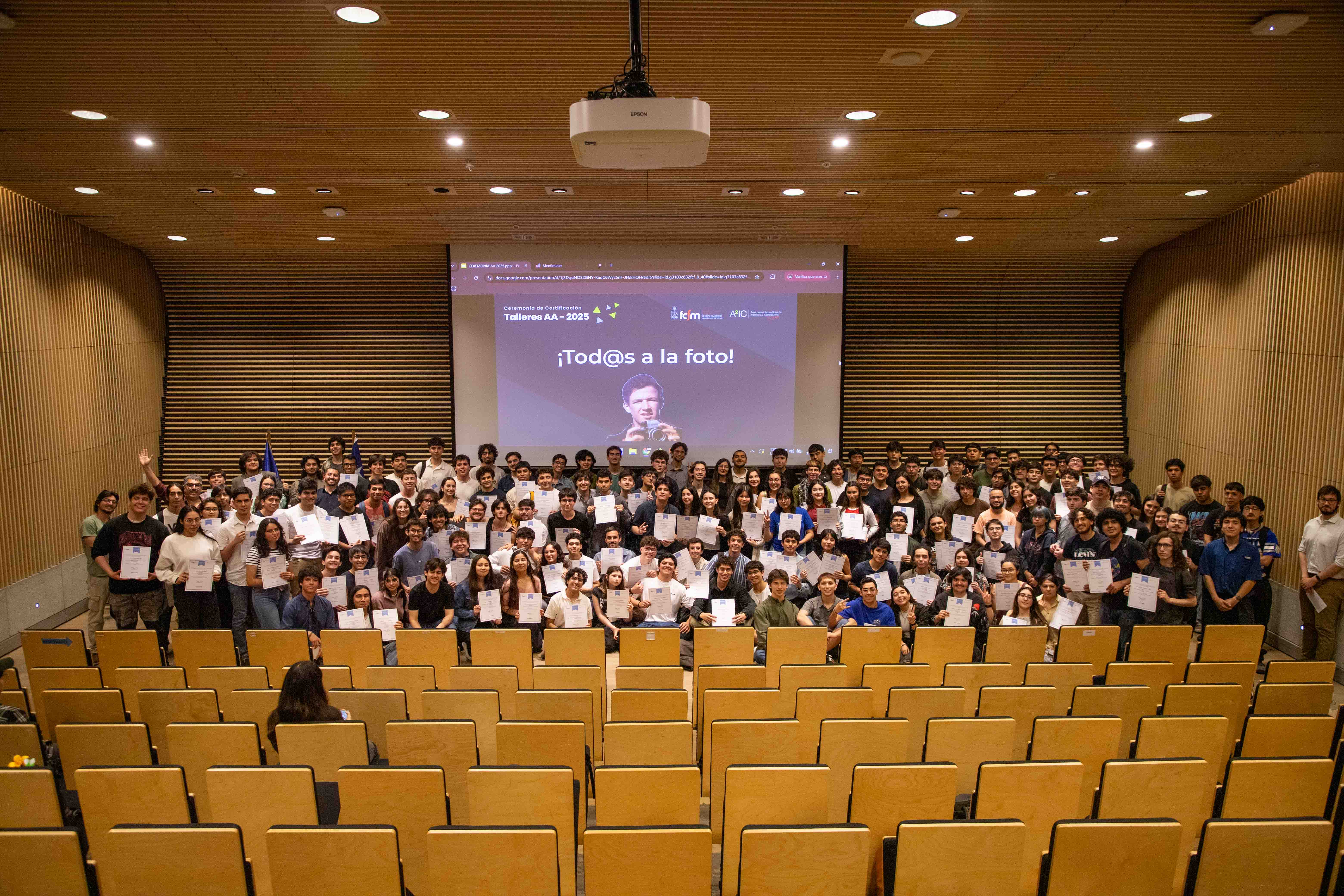En el auditorio D’Etigny, el pasado miércoles 12 de noviembre, se realizó la ceremonia anual de certificación de la comunidad estudiantil que participó de los talleres entregados por el A2IC: Inducción a Competencias Docentes para Auxiliares (AA0010), Ayudantes de Corrección en Cursos Masivos (AA0030) y Movilizando habilidades para resolver problemas ( AA0015 ). Este espacio cierra un año de formación para las y los 367 estudiantes que fueron parte de este ciclo formativo.