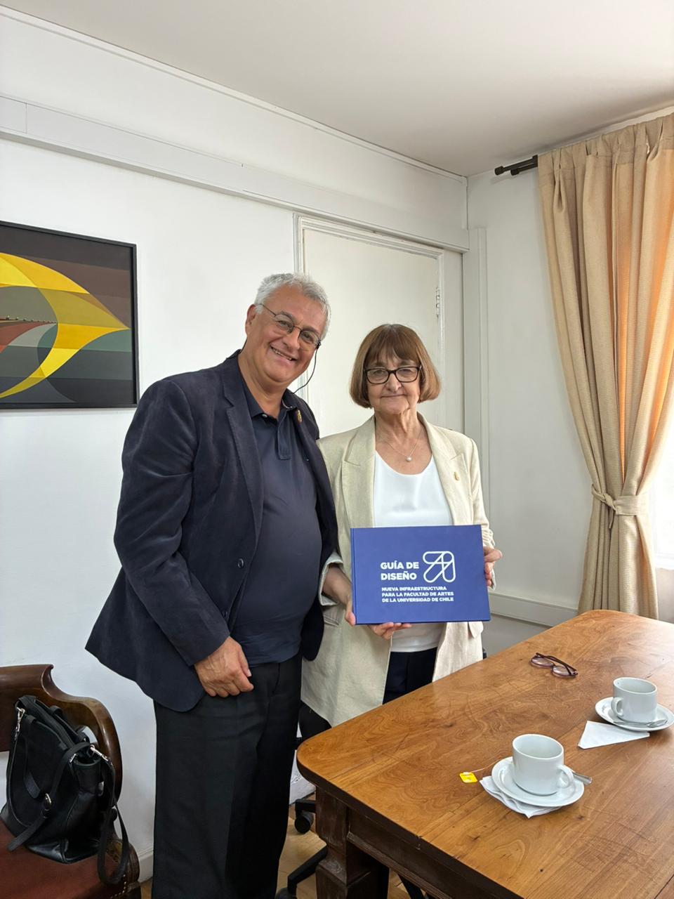 Ante la imposibilidad de asistir a la ceremonia del miércoles, la rectora de la Universidad de Chile, Rosa Devés Alessandri, se reunió el lunes de esta semana con el decano y el vicedecano de la Facultad para conversar sobre el Proyecto Nueva Infraestructura, y recibir en sus propias manos una copia de la Guía de Diseño.