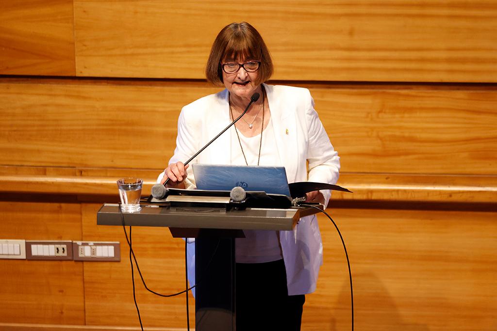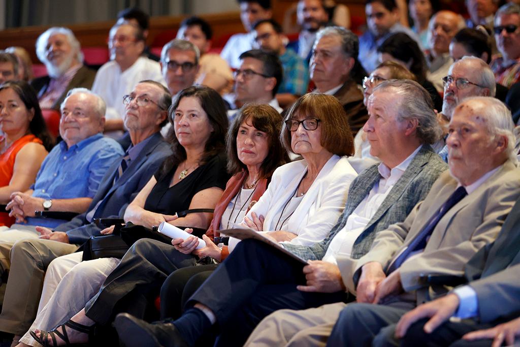 "Su trayectoria encarna de manera ejemplar el espíritu, la visión y la vocación pública de nuestra Universidad. Los tres comparten la condición de maestros, ese atributo que se sitúa por sobre la excelencia y la excepcionalidad, encarnando algo todavía más trascendente. Ser reconocido como maestro no es el resultado de un título ni el efecto de una jerarquía institucional. Ser maestro es una condición que no se solicita, que no se decreta ni se exhibe: se revela en la huella que queda en quienes descubren un camino gracias a otros y otras. El maestro no se distingue únicamente por lo que sabe, sino por lo que hace con aquello que sabe. Su conocimiento no es propiedad privada ni capital de prestigio, es un bien compartido que se guarda en la transformación de las personas que acompañó. Ahí radica su autoridad", señaló la Rectora Devés.