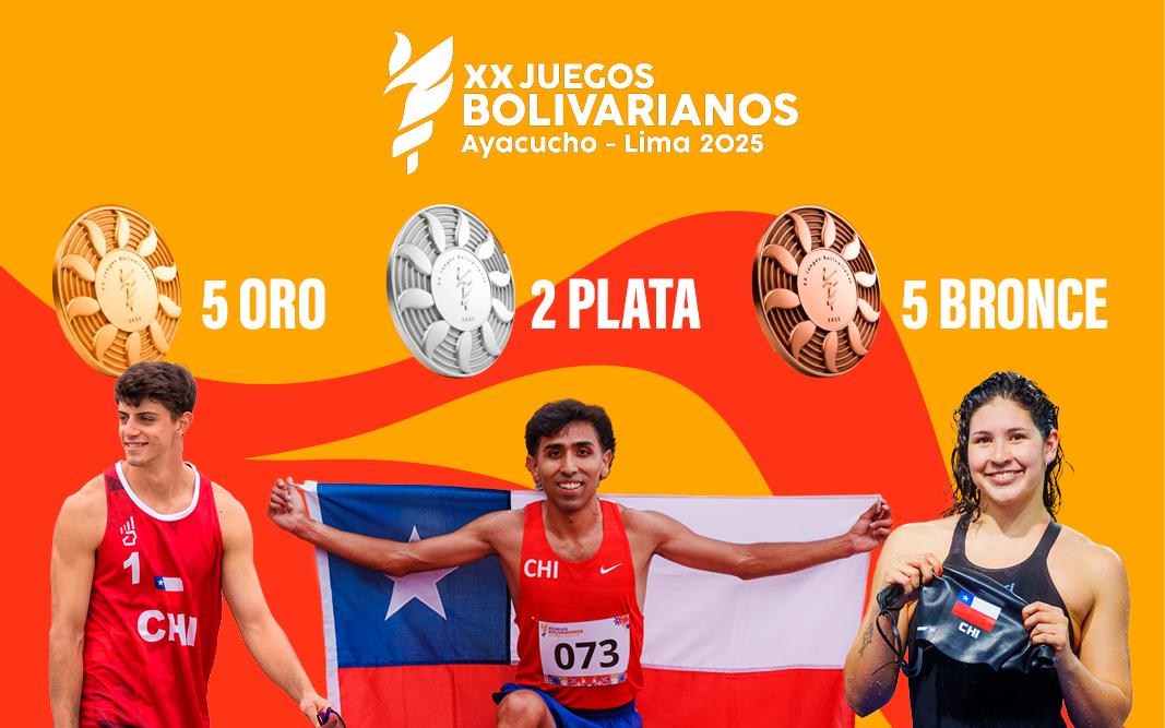 El domingo 7 de diciembre finalizó la vigésima edición de los Juegos Bolivarianos Ayacucho-Lima 2025, evento que inaugura el ciclo olímpico rumbo a Los Ángeles 2028. En esta instancia, la U. de Chile contó con la participación de 16 estudiantes, 6 egresados/as y 1 funcionaria, quienes aportaron al mejor resultado histórico del Team Chile en esta competencia: 4° lugar del medallero general con 53 oros, 57 platas y 53 bronces.