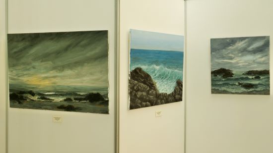 “He tomado un tema muy chileno y relevante, que es el mar. He buscado distintas luces para reflejarlo como estados de ánimo de las personas. Hay cuadros que evocan calma, temor en la tormenta o un mar fuerte que nos va llevando de un lado a otro. La idea es trasuntar, a través de la forma evidente del mar, un estado anímico subyacente”.