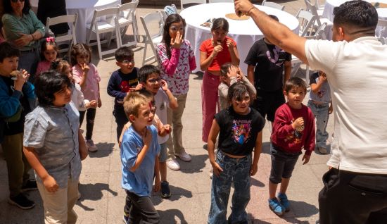 El momento más esperado llegó cuando el Viejo Pascuero anunció su llegada. En cuestión de segundos, niñas y niños corrieron a su encuentro para recibir con entusiasmo sus regalos.