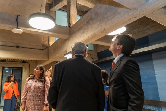 Acto seguido, reveló la primicia y el hito del encuentro: un recorrido por los Cimientos de la Facultad, el nuevo espacio que suma más de mil metros cuadrados a la Escuela y que reunirá salas de estudio, lugares de descanso y recreación, entre otras instalaciones para los alumnos.