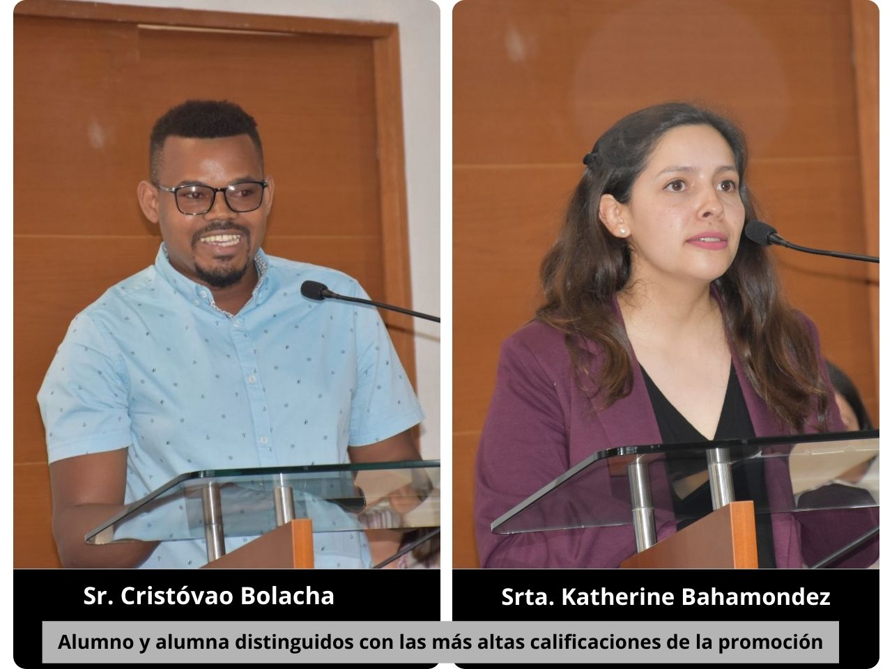 Posteriormente, se hizo entrega de la distinción a las más altas calificaciones de la promoción, las cuales recayeron en el Sr. Cristóvao Bolacha y en la Srta. Katherine Bahamondez.