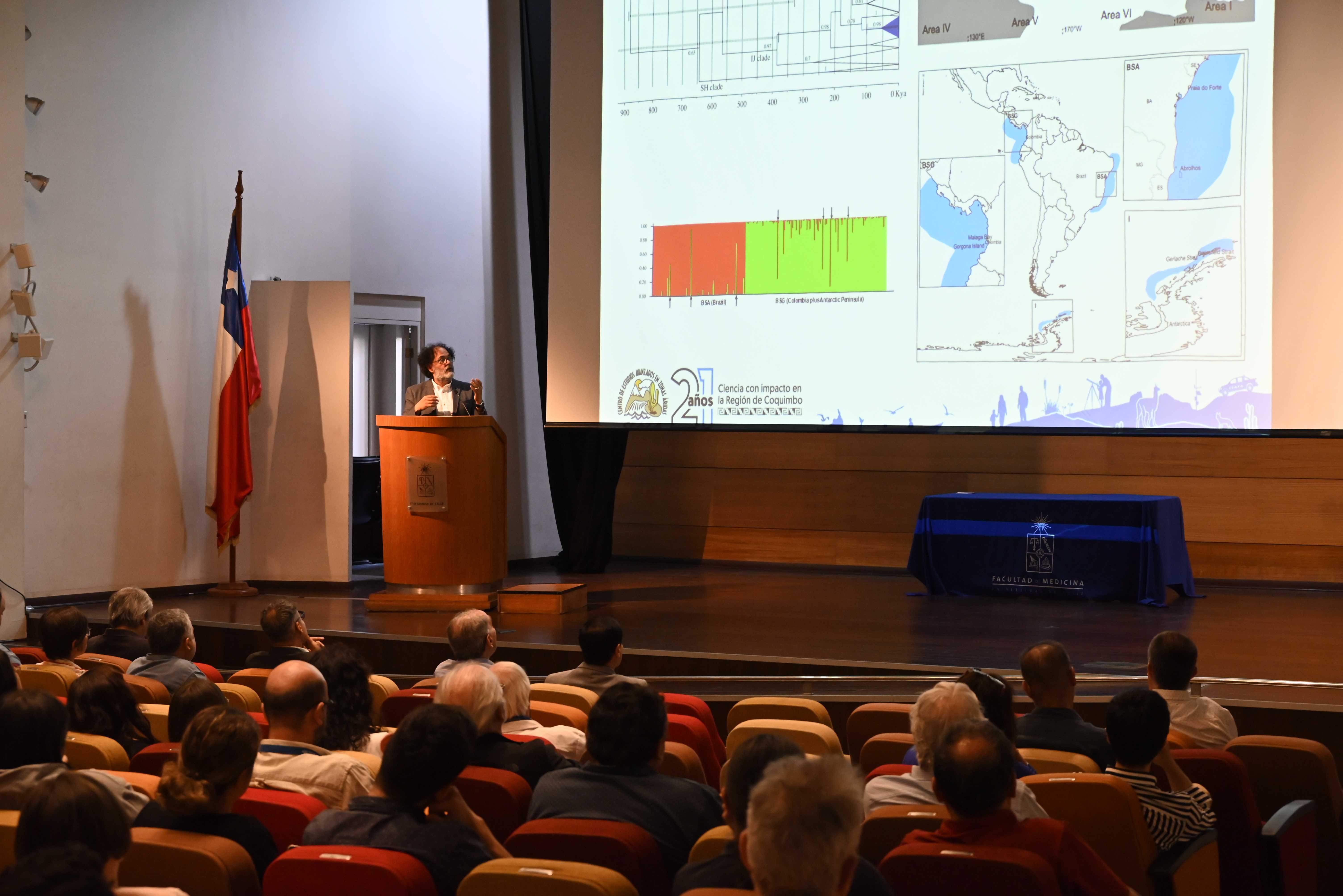 La actividad incluyó un conversatorio–entrevista a la Dra. María Cecilia Hidalgo Tapia, ex integrante del ICBM y Premio Nacional de Ciencias Naturales 2006, y la Conferencia Magistral “Ballenas, ciencia y país: navegando entre la ecología, la política y la estrategia”, dictada por el Dr. Carlos Olavarría, director del Centro de Estudios Avanzados en Zonas Áridas (CEAZA) y miembro de la comisión asesora ministerial del Ministerio de Ciencia, Tecnología, Conocimiento e Innovación.