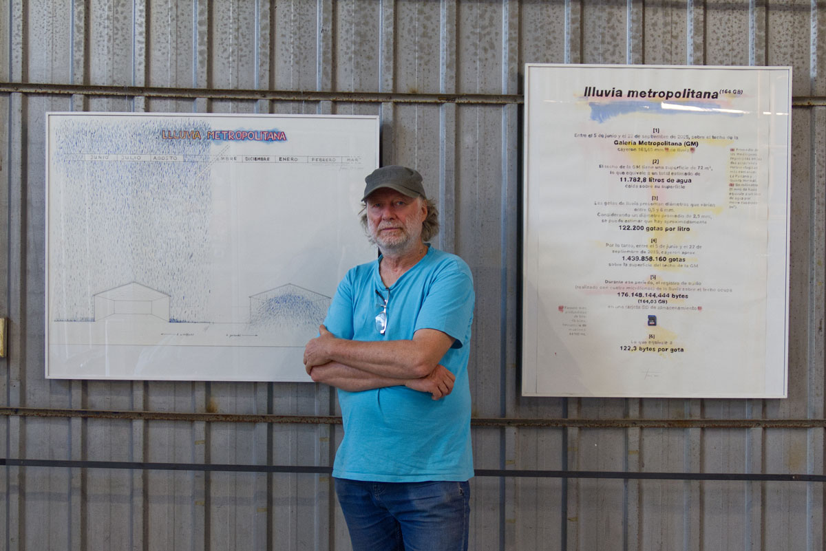 Por su parte, Rainer Krause aporta una dimensión visual a través de dibujos elaborados durante el transcurso del proyecto. El prof. Krause reflexiona sobre la necesidad de estos medios para la planificación y la expansión del pensamiento artístico: "Las postulaciones a fondos concursables exigen eso, los bocetos de montaje. Pero después hay dibujos posteriores que amplían el espectro de todo ese proyecto o el campo de asociación, pensando que abriendo el campo significa que se puede ver de otra forma el trabajo". Sus dibujos proponen una reflexión poética sobre la relación entre el almacenamiento digital de la lluvia y la cantidad matemática de gotas que caben en ese tiempo de registro, además de remitir a tiempos míticos como el diluvio.