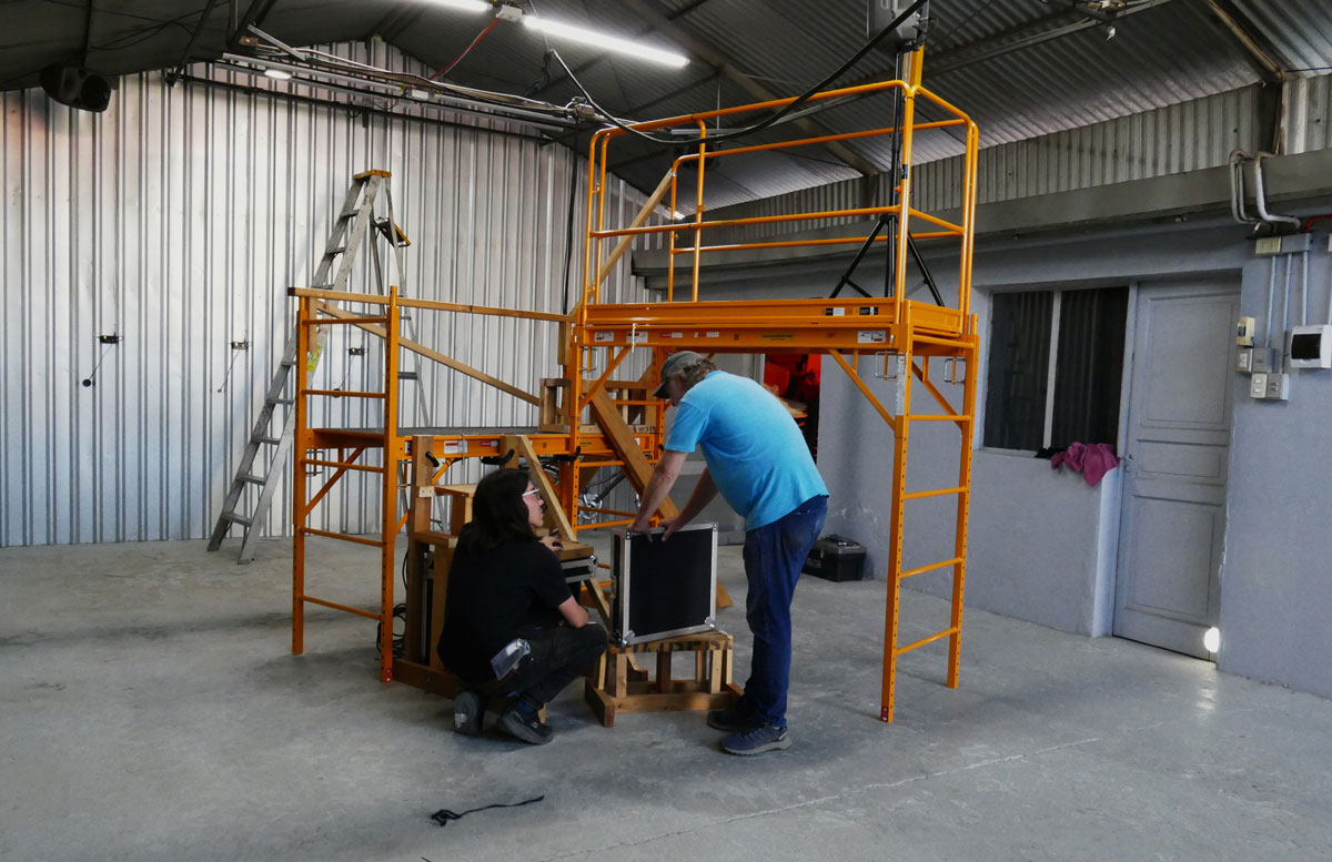 La elección de la Galería Metropolitana fue fundamental, ya que su arquitectura de galpón industrial con paredes de lata funciona como una caja de resonancia que Matías identificó como un material vibrante mientras trabajaba en un montaje previo, en el año 2021: "Mientras instalaba un proyector se sacudía toda la infraestructura, ya que no es tan sólida. Sentí la vibración del techo y de las paredes. Dije: acá hay un material, aquí hay algo interesante. Las estructuras que parecen rígidas, que son las que nos contienen, en realidad son más flexibles".