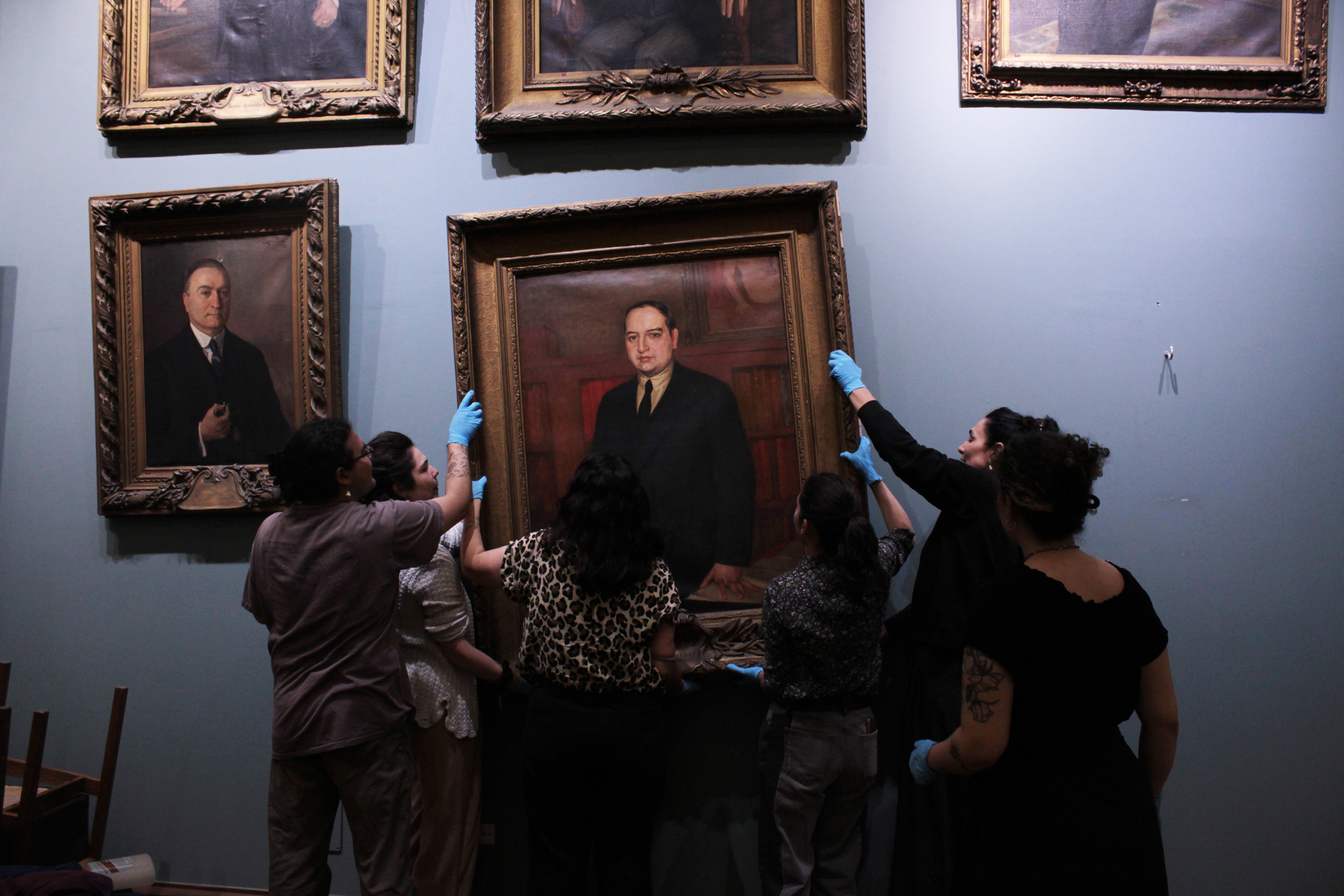 El trabajo de restauración de tales retratos comenzó este mes, partiendo por el traslado de las obras al Taller de Restauración en la sede Las Encinas de las Facultad de Artes para asegurar las condiciones adecuadas de trabajo, además del resguardo y cuidado de las piezas. Allí, el equipo compuesto por seis conservadoras, dos pasantes del Postítulo en Conservación y Restauración de la misma Universidad y una encargada de registro, estará concentrado en esta labor hasta finales de marzo, y tras la culminación del proceso, las obras serán retornadas a su emplazamiento original en la Casa Central.