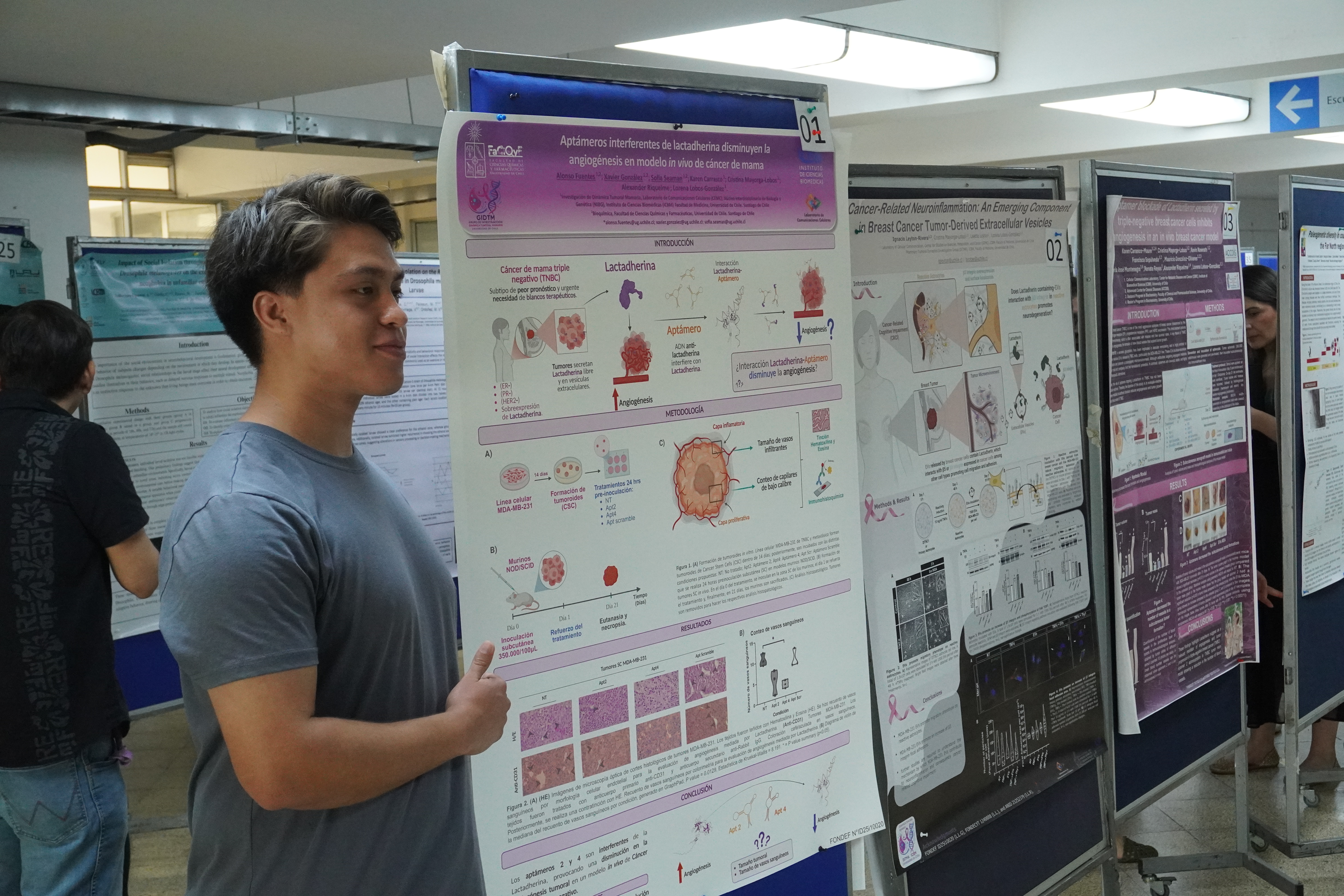 En el marco de estas presentaciones, la jornada incluyó un reconocimiento a los trabajos destacados, premiando una presentación oral y un poster científico. El reconocimiento a la Mejor Presentación Oral fue otorgado a Francisca Sepúlveda, del Laboratorio de la Dra. Lorena Lobos, por su trabajo “Dinámica tumoral mamaria: una nueva visión del microentorno tumoral”. Por su parte, el premio al Mejor Poster recayó en Karla Villalobos-Nova, del Laboratorio del Dr. Julio Tapia, por la investigación “Localization of endothelin-converting enzyme-1c in the multivesicular body of colorectal cancer cells”.