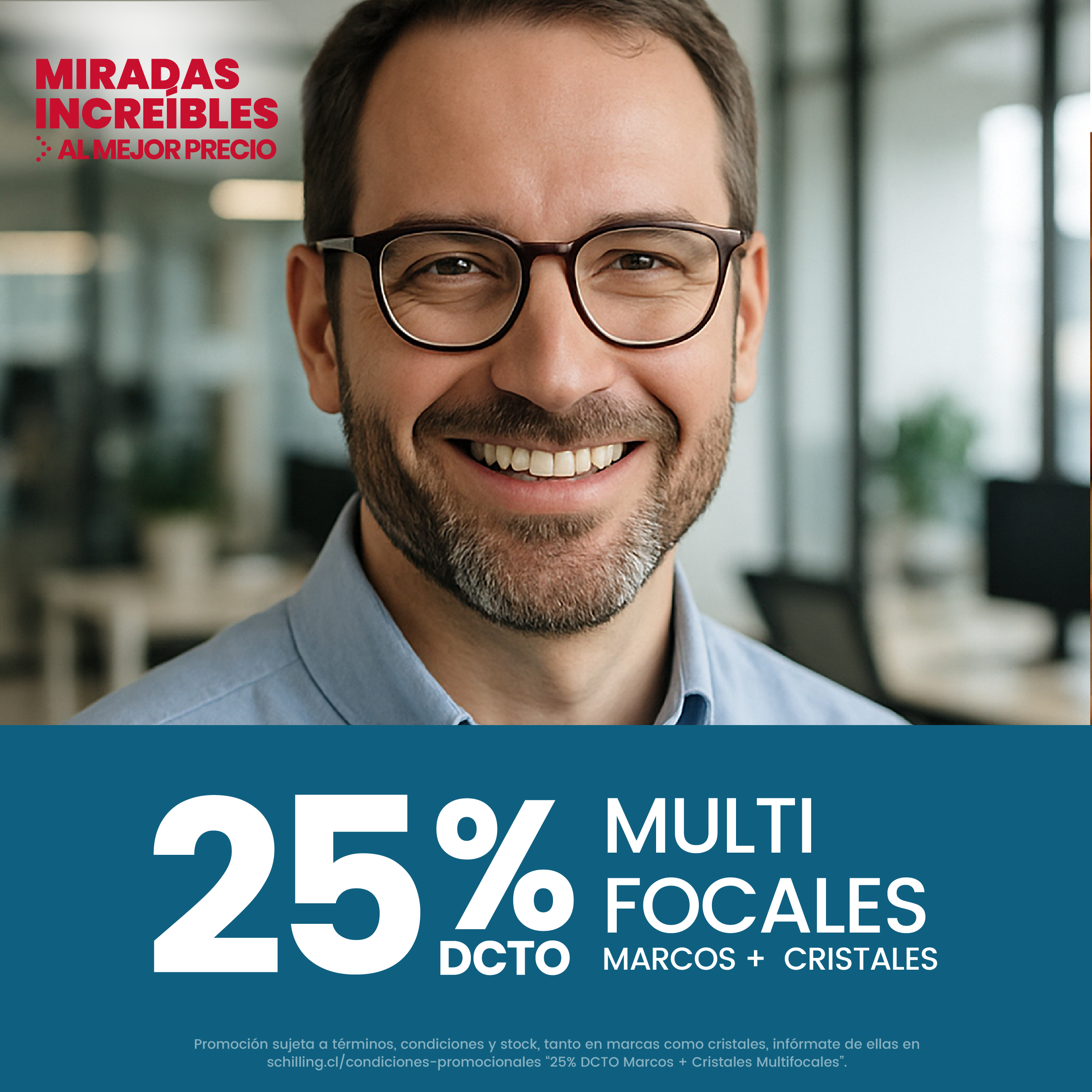 20% armazones y cristales (excepto lentes para presbicia pre graduados), 12% lentes de contacto laboratorio propio y lentes de sol, además de la posibilidad de orden de atención.