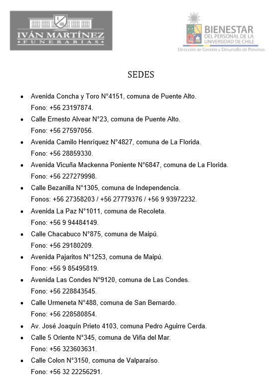 Los(as) socios(as) interesados(as) deben contactarse directamente con Maria Soledad Botto, ejecutiva de la Funeraria.