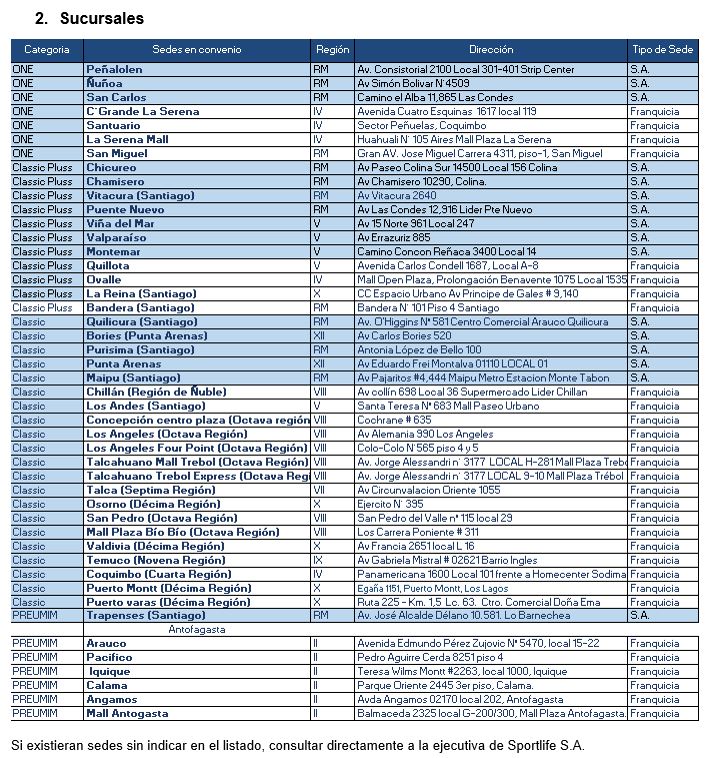Cualquier información y/o consulta que los(las) socios(las) necesiten antes y a posterior de contratar su plan, debe ser exclusivamente con la ejecutiva de Sportlife. En ningún caso en sedes de la empresa.