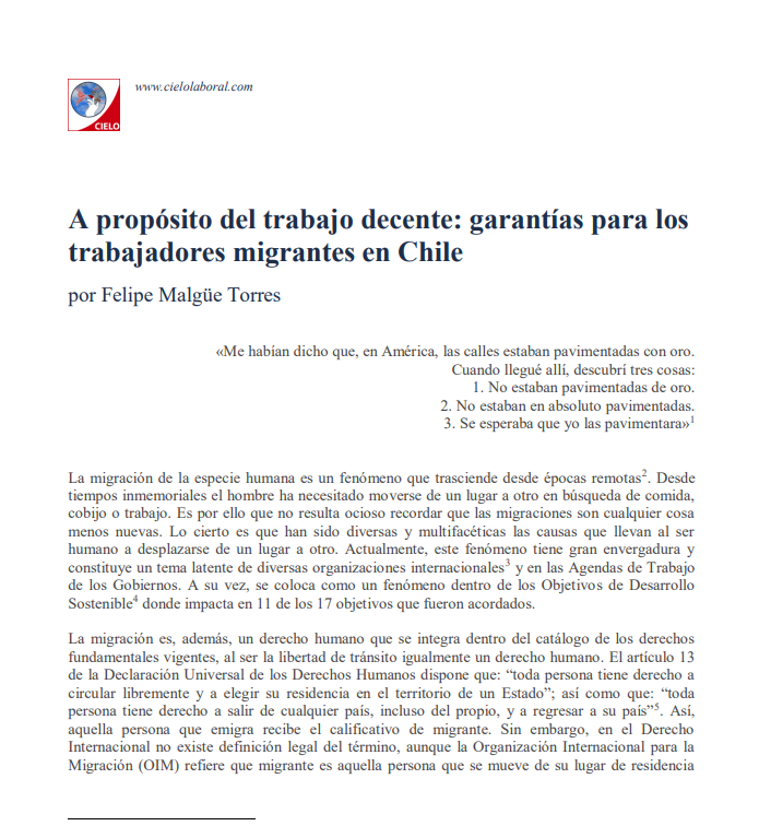 A propósito del trabajo decente: garantías para los trabajadores migrantes en Chile