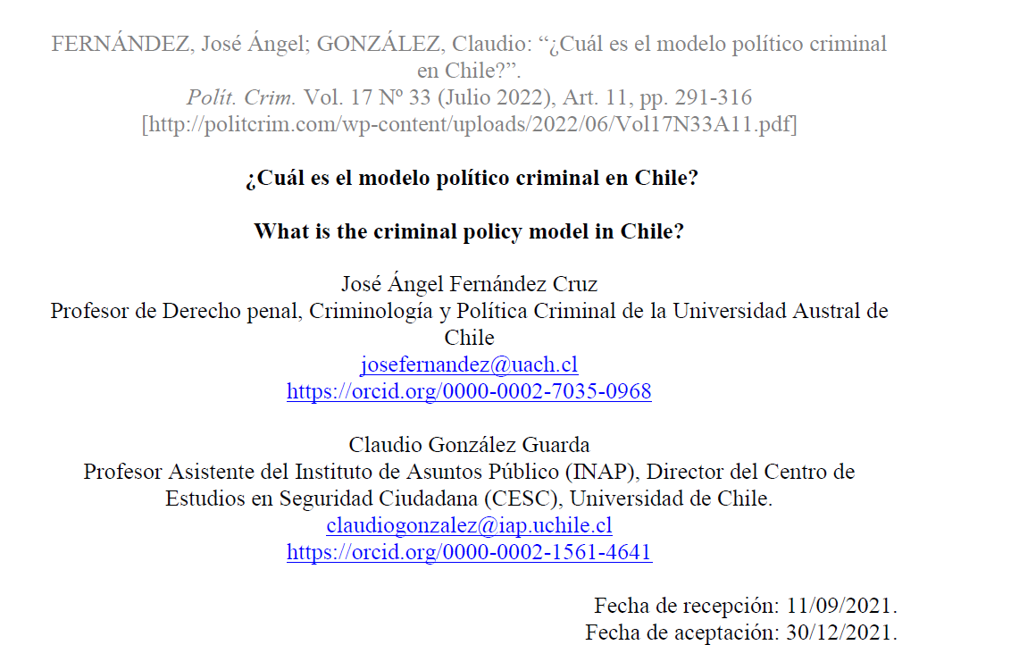 Palabras clave: política criminal chilena, modelos de política criminal, garantismo penal, bienestarismo penal, punitivismo