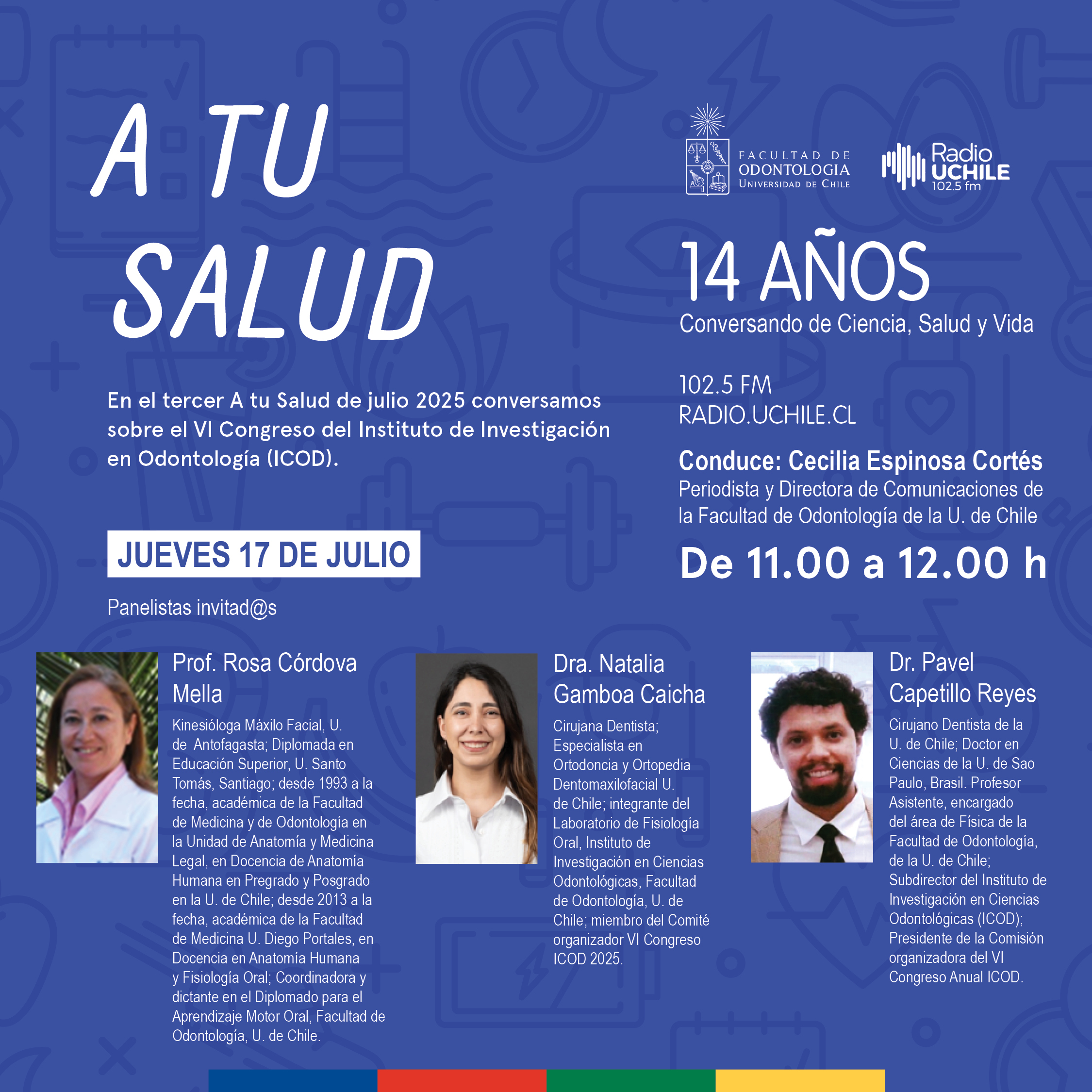 (Miguel Claro 509, Providencia, Santiago)En el tercer A tu Salud de julio 2025 conversamos sobre el VI Congreso del Instituto de Investigación en Odontología (ICOD).