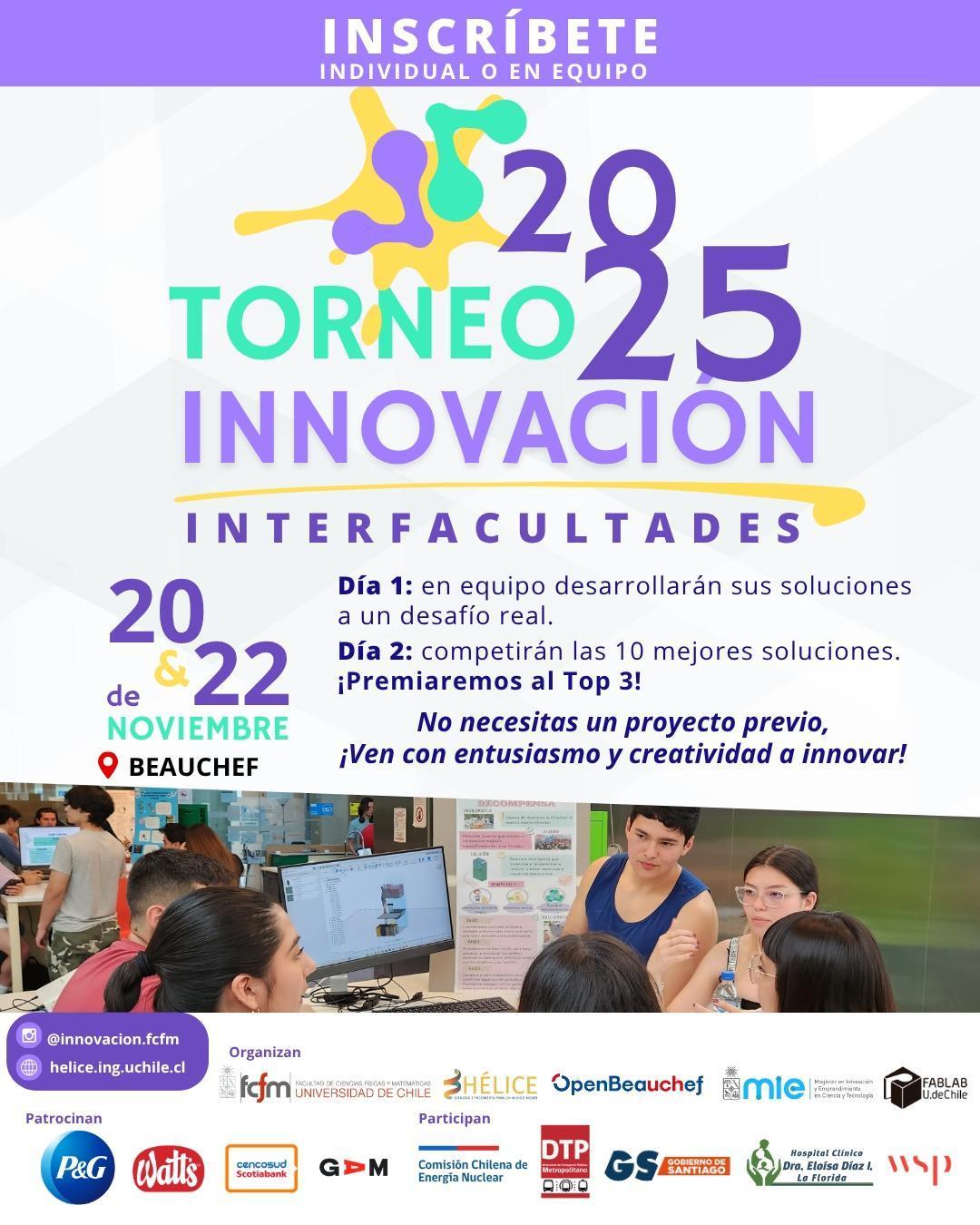 El Torneo de Innovación 2025 es un espacio práctico y real, donde los desafíos provienen de empresas y organizaciones chilenas de distintos rubros, que necesitan mentes jóvenes, creativas e innovadoras para resolver problemas contingentes y diversos. 🏢✨