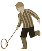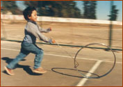 Denominación. Argentina: arco Brasil: rolar arco Colombia: aro Chile: aro o rueda España: denominaciones en catalán; l´aro, l´anella, la roda, rutles, fer rodar, fer córres el cércol, rodanchil, la rodeta, redonchar; rodoncho (pueblos aragonese de la parte occidental); corroncho (Agüero); reduncho (Almudevár); rodoncho (Santa Eulalia de Gállega); rutlla (Girona). Bélgica (Región de Flandes): Hoepelen of reeplopen Estados Unidos. The hoop. Inglaterra. The hoop. * En Barcelona (España), en la plaza Puig i Alfoso (Barrio del Guinardó), se encuentra un escultura de un niño jugando al aro. Los vecinos de esta plaza la conocen por el nombre: Plaza del niño del aro. Dispersión. Internacional. Comentario. François Rabelais (1495-1550) lo describe en Gargantúa y Pantagruel, como entre los juegos que Gargantúa realiza en su infancia. Pieter Brueghel (1530-1569), pintor flamenco, lo registra en su citada pintura Juegos infantiles; Pierre Auguste Renoir (1841-1919) tiene entre sus cuadros uno que representa a una niña con aro; el pintor italiano nacido en Grecia, Giorgio de Chirico (1888-1978), en su obra Melancolía y misterio de una calle, incluye una niña impulsando un aro; el pintor español Antonio Mª Esquivel (Sevilla 1806 - Madrid 1857) en su obra Niña (Tiene un aro con una cruz dentro en el que van sujetos cascabeles, que al girar el aro con la varilla produce ruido); y el pintor español Joaquín Sorolla y Bastida (Valencia 1863 - Cerdilla 1923) en su obra María en los Jardines de La Granja (1907), Nº de inventario 796, en este cuadro su hija María tiene un aro en una de sus manos, en los jardines de la casa propiedad del artista. Una trilogía de pintores chilenos con autoridad, toma el tema: Ernesto Molina Vásquez (c. 1857-l904) tiene muy bien cogida una época de este juego en su tela La niña del aro; Demetrio Reveco (1863-1922), pintor realista, fijó en una de sus telas al óleo, a una niña con aro, que él tituló Niña con juguete; y sigue Alfredo Helsby Hazell (1862-1933) quien pintó el Paseo Atkinson, en el cual figura una niña que corre tras el aro (Museo Municipal de Valparaíso). Existen sellos postales, que representa este juego en: Argentina (1984), Bélgica (1966), Islandia (1989).