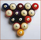 Denominación. Billar. Dispersión. En toda América. Comentario. Este juego ofrece diversas modalidades (carambolas, banda directa, tres bandas), según los países, aunque el principio fundamental es el mismo y está íntimamente relacionado con la teoría del choque de los cuerpos y la elasticidad del marfil, materia de la cual se fabrican las bolas usadas en el juego. Por el año 1892 se funda en Santiago la Casa van de Wyngard que se dedica a la fabricación de mesas de billar y que, por el año 1910, tenía una producción anual de 60 mesas. Las piezas fabricadas por esta casa poseían espléndidas barandas inglesas y de estilo americano y francés. Su precio de venta era un 30 por ciento más bajo que los billares importados. En la pintura chilena este juego está representado por Fernando Morales Jordan (1920) en su obra Jugando billar (1942), propiedad del Museo de Bellas Artes de Viña del Mar; Medardo Espinoza Castro (1918) con su xilografía El billar, colección Universidad de Playa ancha, Valparaíso, Chile; el dibujante Lukas (Renzo Antonio Giovanni Pecchenino Raggi, Ottone, Italia 1934 - Viña del Mar 1988) en su libro Sewell de la Mano de Lukas, figura un dibujo con este juego. Se le dio la nacionalidad chilena por gracia en 1987.