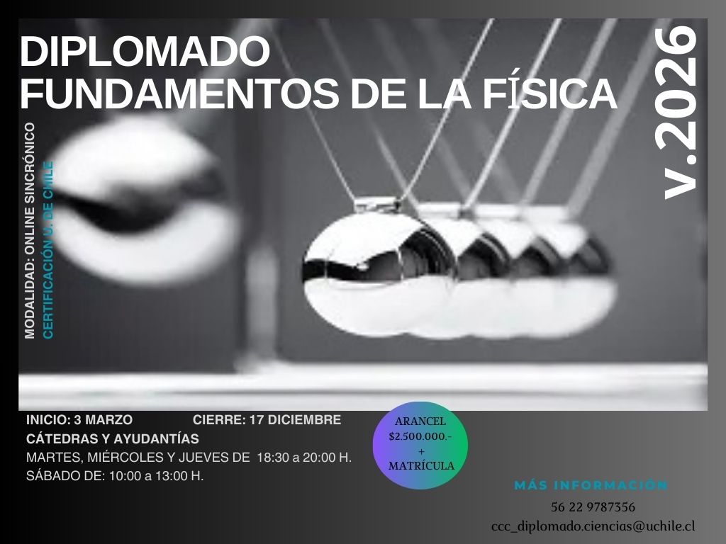 El Diplomado de Postítulo Fundamentos de la Física aporta una formación cuantitativa y cualitativa global en Física. Su desarrollo abarca desde mecánica básica a física moderna, pasando por disciplinas como electromagnetismo, óptica, termodinámica, mecánica estadística y mecánica cuántica, además se incluyen unidades de matemáticas que son necesarias para el abordaje y la comprensión de las materias expuestas en el diplomado.