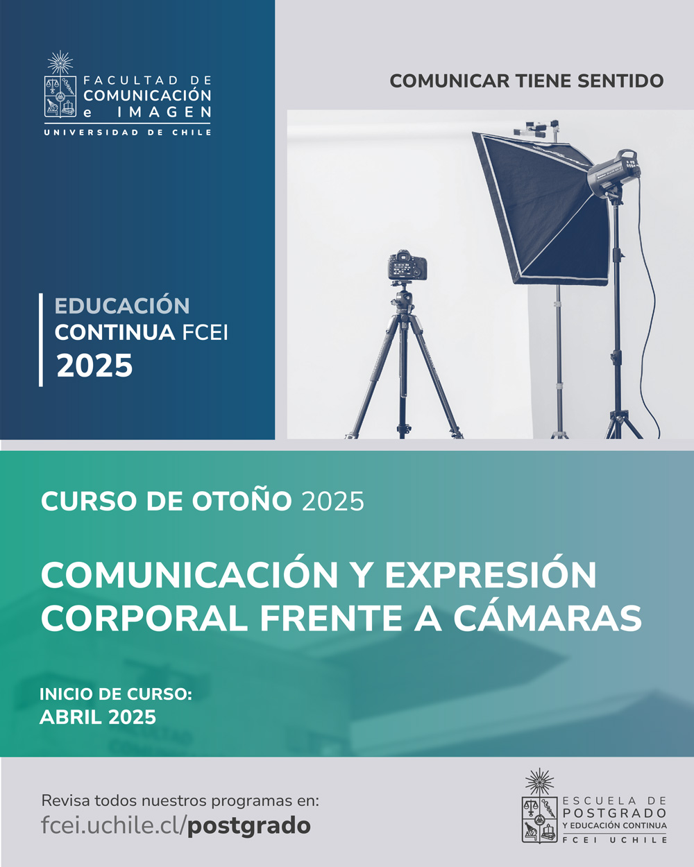 - Modalidad: Presencial en Facultad de Comunicación e Imagen (Av. Capitán Ignacio Carrera Pinto #1045, Ñuñoa).