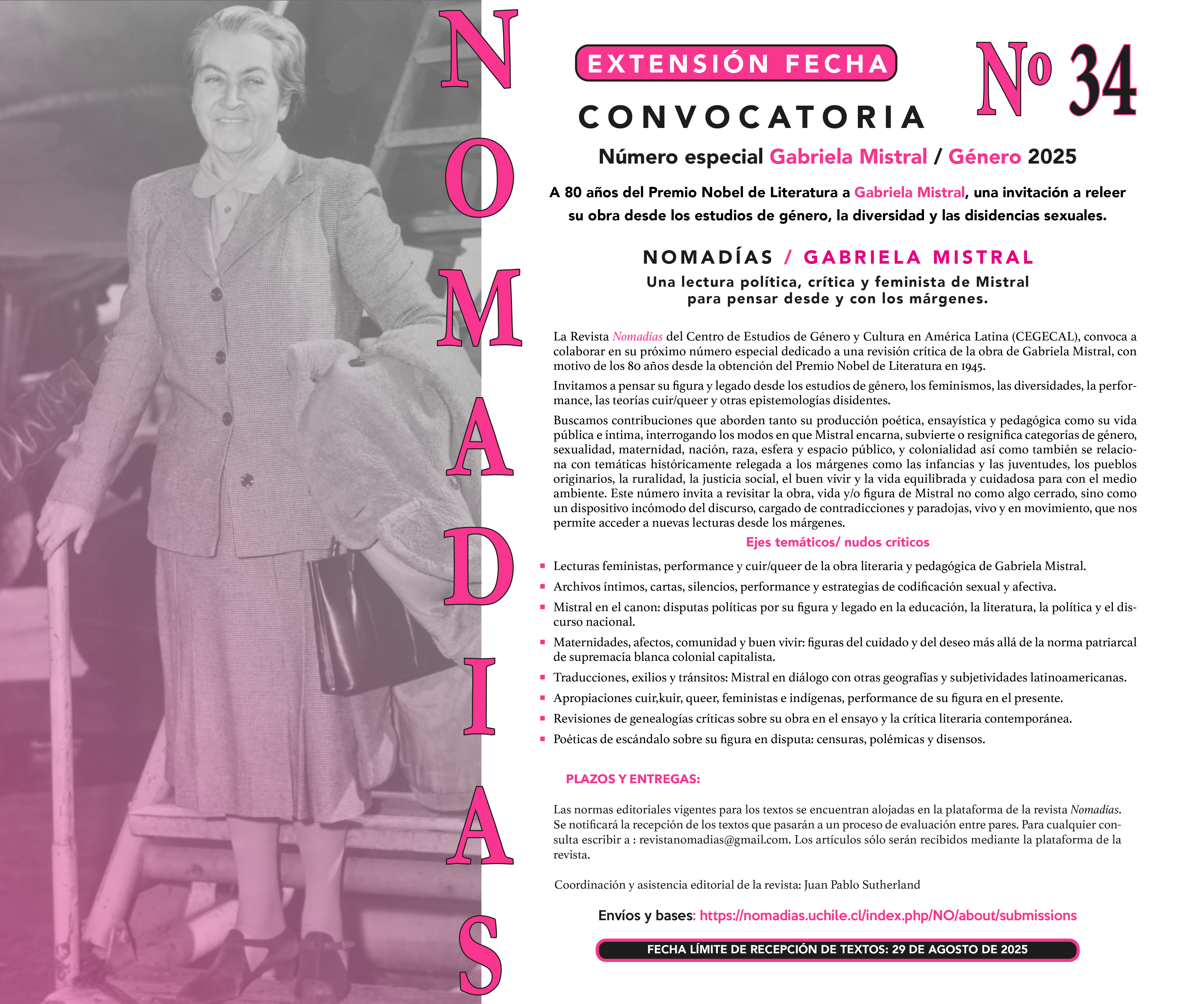 Convocatoria ampliada al Número especial Revista Nomadías Gabriela Mistral / Género 2025