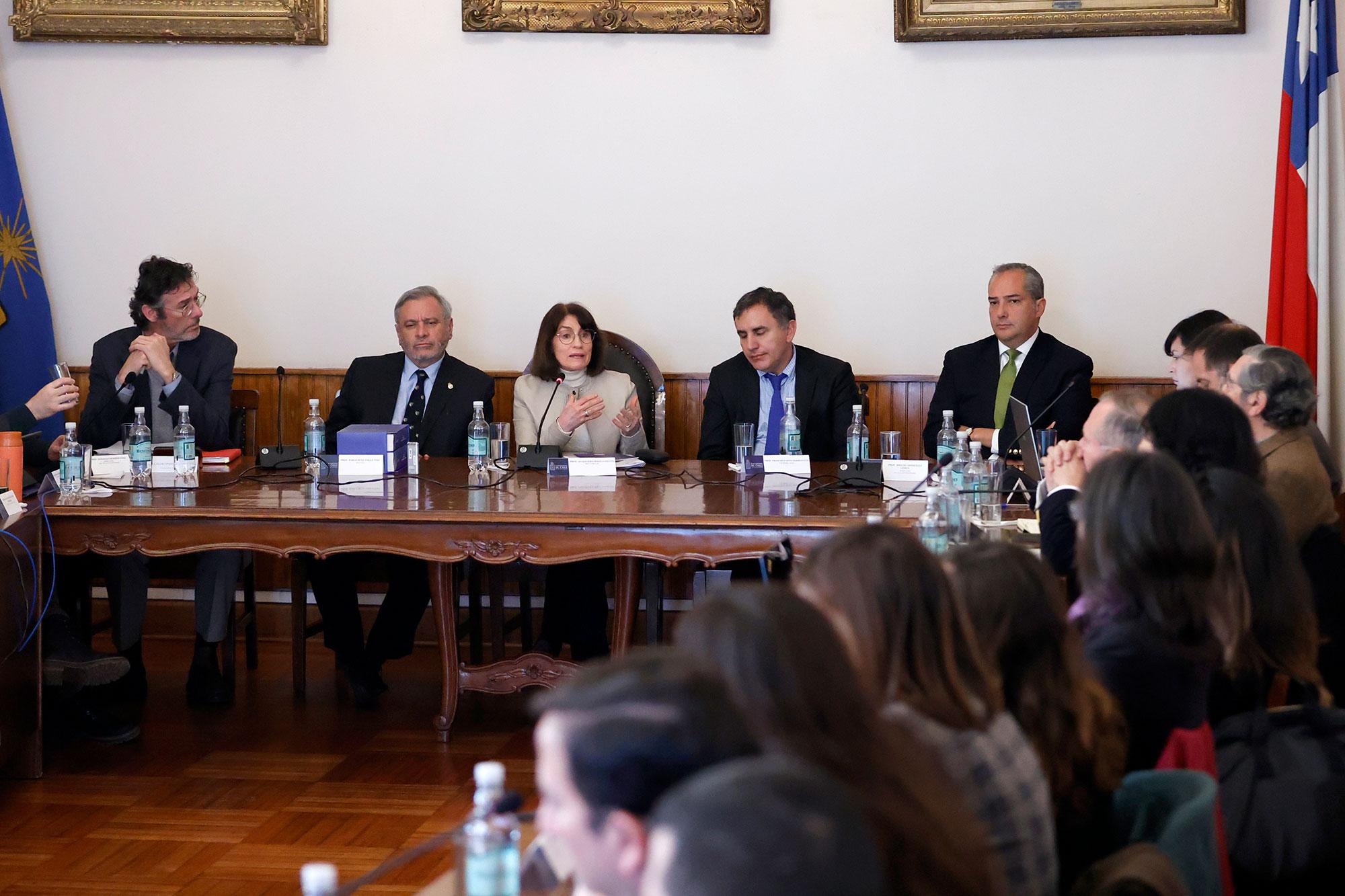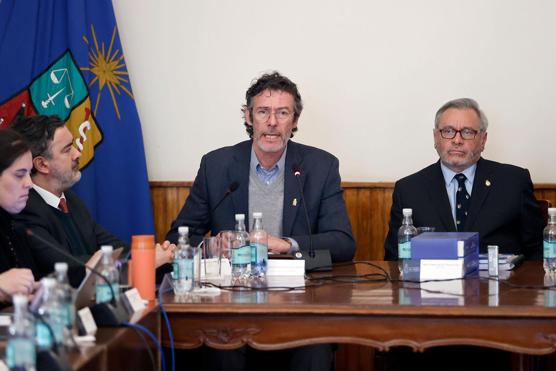 El consejo de la Facultad de Derecho, dirigido por el decano, Pablo Ruiz-Tagle, recibió a la prorrectora, Alejandra Mizala; al vicerrector de Asuntos Académicos, Claudio Pastenes, y al director ejecutivo de acreditación, Thomas Griggs, para interiorizarse sobre los principales resultados del informe de autoevaluación institucional. A la reunión, realizada el 23 de julio, asistieron directivas, directivos, académicas, académicos, representantes de estudiantes y de funcionarios.