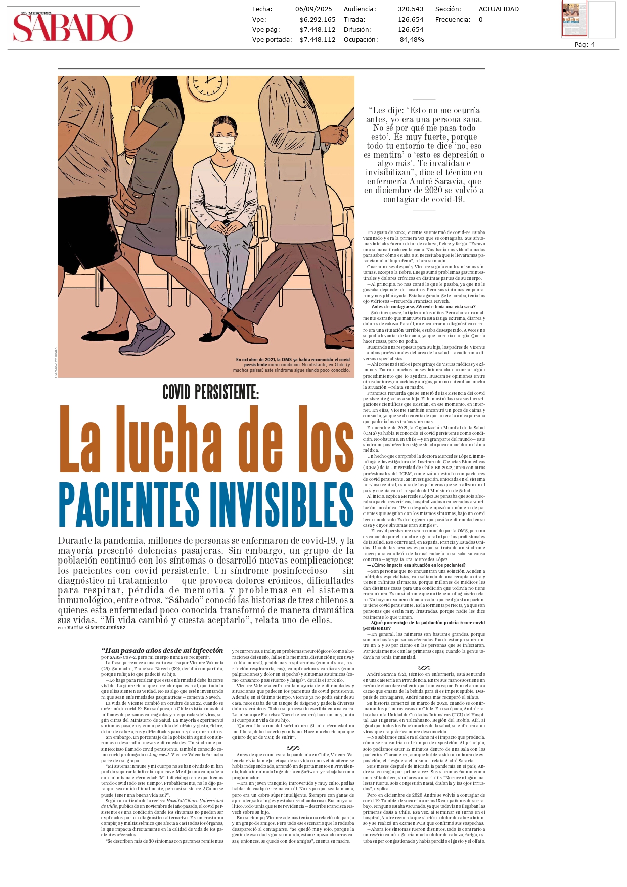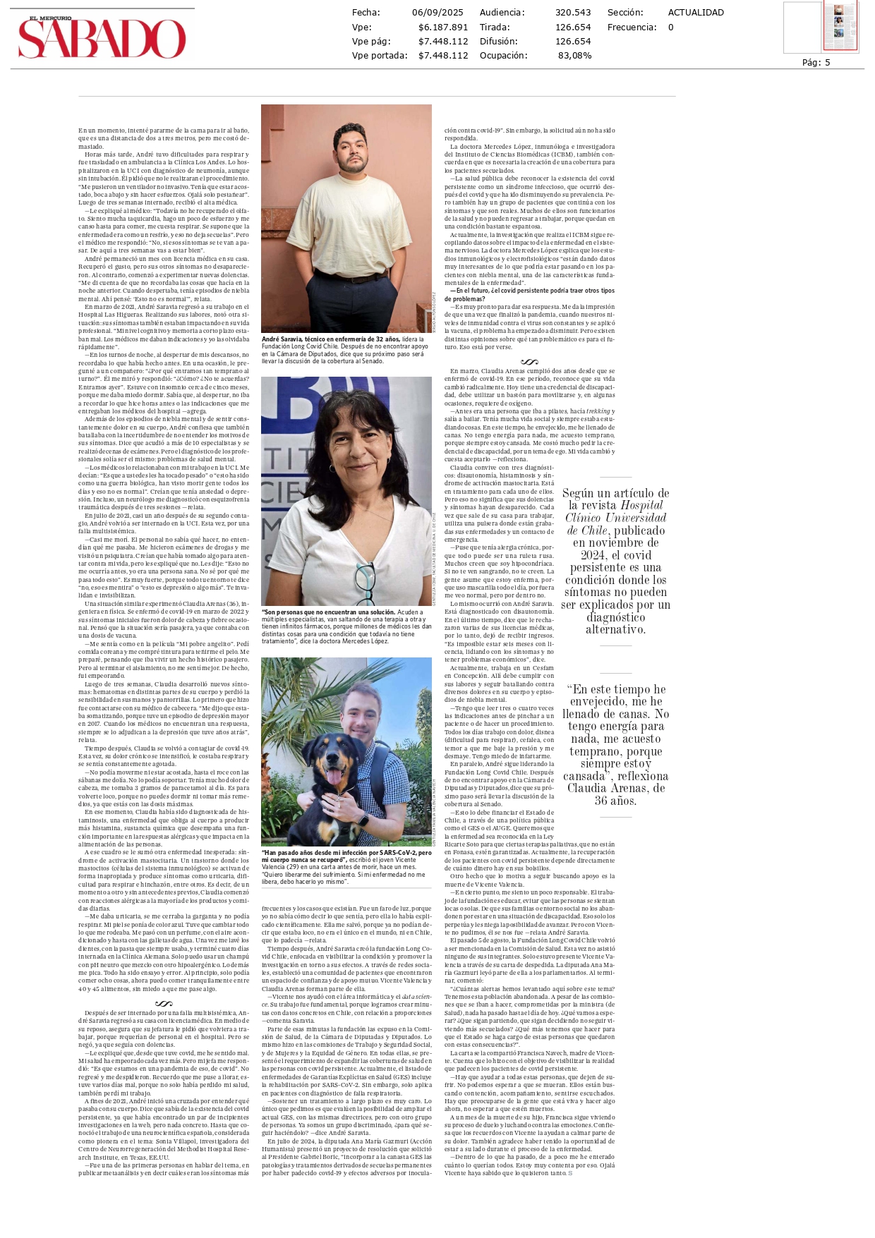 La Dra. Mercedes López, inmunóloga e investigadora del Núcleo Interdisciplinario de Farmacología e Inmunología del Instituto de Ciencias Biomédicas (ICBM) de la Universidad de Chile, fue parte del reportaje publicado en la revista Sábado de El Mercurio, que abordó el impacto del covid persistente en pacientes chilenos.