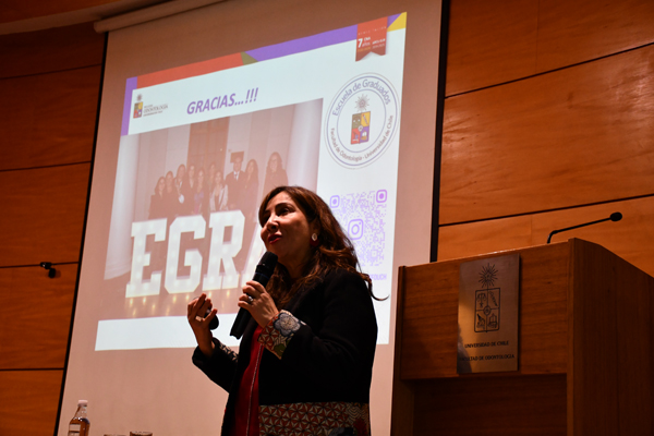 La Subdirectora EGRA y Coordinadora del Postítulo, la Dra. Andrea Maturana, destacó que, “en esta Cuenta Pública, tuvimos la oportunidad de compartir los avances y logros de nuestra Escuela de Graduados, especialmente durante el último año, resultados que son fruto de un sólido trabajo en equipo, que ha permitido de fortalecer la gestión interna, impulsar procesos de acreditación y re acreditación de diversos Programas, y así consolidar nuestro liderazgo en la formación de Especialistas, Magísteres y Doctorados, en el ámbito de la Odontología”. La Dra. Maturana enfatizó que “somos conscientes que aún quedan desafíos por delante, pero estoy convencida que con esfuerzo y compromiso, seguiremos proyectándonos como la Facultad número uno en Chile, tal como lo reflejan los principales Rankings internacionales”.