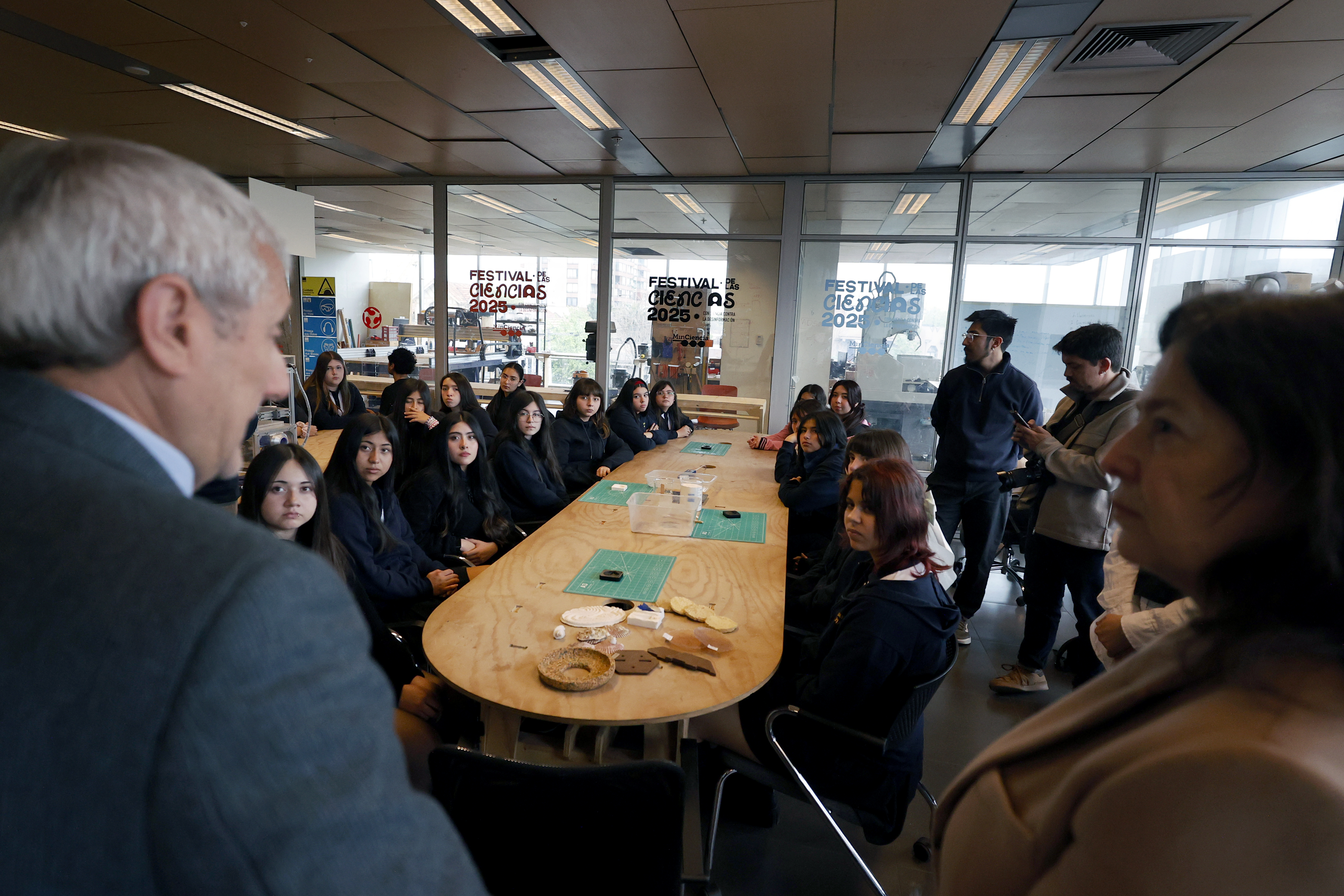 La Semana de la Ciencia 2025, que se desarrollará entre el 29 de septiembre y el 5 de octubre, tuvo su inicio oficial con la visita del ministro de Ciencia, Tecnología, Conocimiento e Innovación, Aldo Valle, al FabLab de la Facultad de Ciencias Físicas y Matemáticas de la Universidad de Chile. En el recorrido participaron también la decana (S) de la FCFM, Marcela Munizaga, y el subsecretario general de Gobierno, Erwin Díaz. El espacio fue presentado por su directora, Danisa Peric, y contó además con la presencia de 20 estudiantes del Colegio Bicentenario Madre Ana Eugenia de Pudahuel, quienes participaron en un taller en el FabLab.