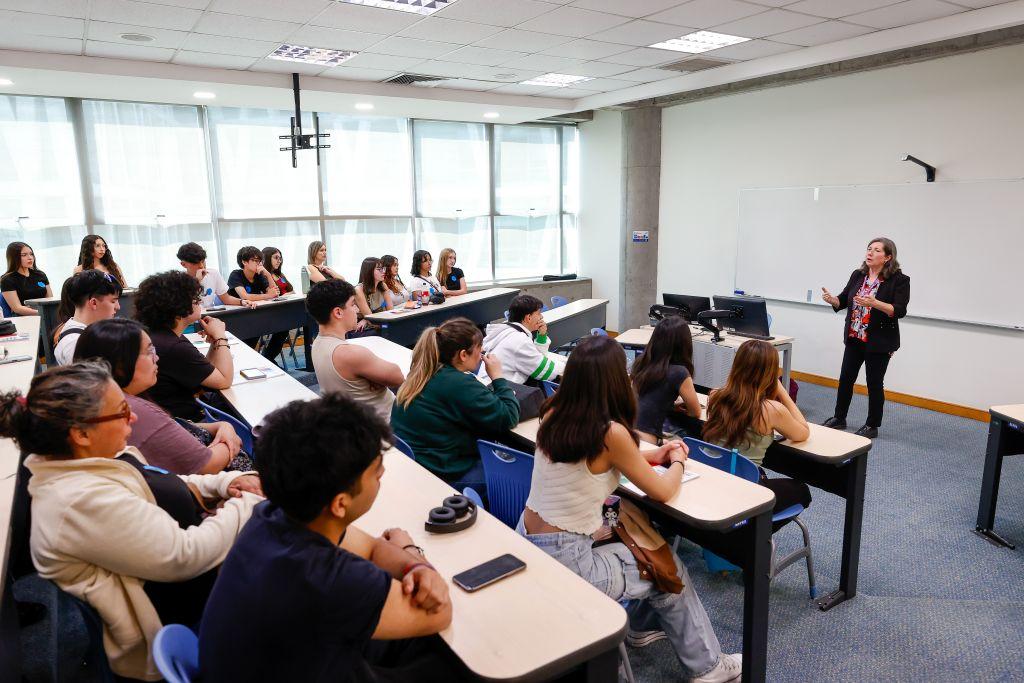 Un espacio que debutó este año en la feria de orientación fue el de actividades interactivas. Una de ellas fue un juicio simulado, guiado por monitoras de la carrera de Derecho, en el que participaron Florencia Herrera y Antonia Figueroa, del Colegio Licarayen de la Florida, quienes asistieron a la Feria como parte de un premio que les entregó su colegio a la excelencia académica. Antonia, quien quiere estudiar Derecho, destacó que en la actividad “pudimos conectar con las demás personas, hablar con la gente, tratar de buscar un argumento, ponernos de acuerdo y fue muy entretenida. Me sirvió demasiado”.