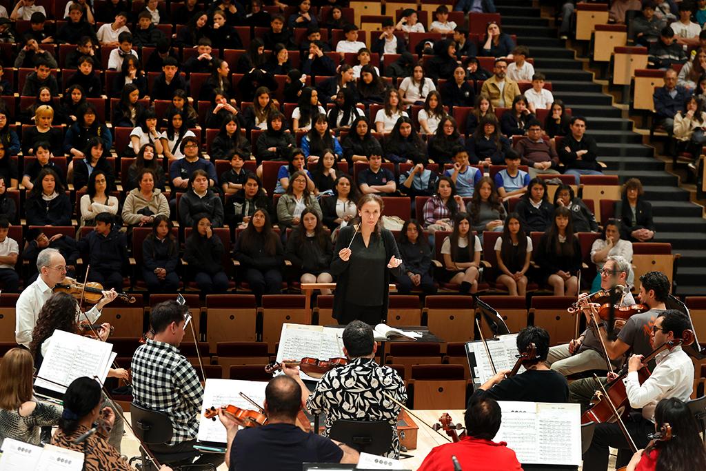 “Tener la posibilidad de recibir a estudiantes de distintos lugares de Santiago en un espacio de la calidad de la Gran Sala Sinfónica Nacional es un primer gran beneficio”, señaló Amelia Ibáñez, Coordinadora del Área de Educación y Mediación del CEAC, quien destacó la importancia de “acercar a los estudiantes al lenguaje de la música sinfónica y la danza contemporánea”. El pasado viernes, el ensayo congregó a 180 estudiantes pertenecientes a conjuntos de la Fundación de Orquestas Juveniles e Infantiles (FOJI) y 250 de diferentes colegios, entre ellos el Liceo Bicentenario Víctor Jara.