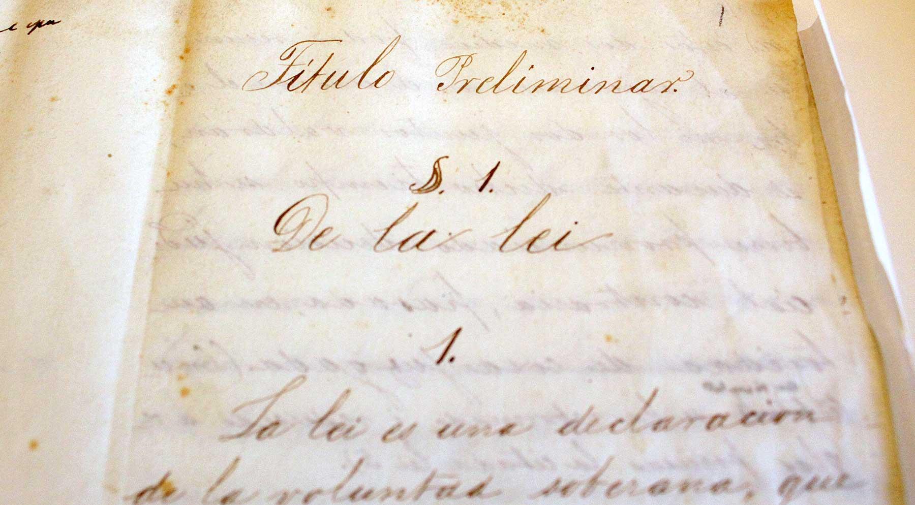 Sin duda uno de los aportes más relevantes que se le atribuyen a Andrés Bello fue el Código Civil chileno, una de las obras jurídicas más influyentes del siglo XIX, no solo en nuestro país, sino que sirvió de ejemplo y base para los códigos de otros países de Latinoamérica. Iniciado alrededor de 1830 y luego de casi dos décadas de trabajo metódico y minucioso, este monumental proyecto se terminó de realizar en 1855 con su aprobación por el Congreso Nacional. Inspirado en el Derecho Romano, el Código de Napoleón y las Siete Partidas españolas, Andrés Bello buscó modernizar y sistematizar la legislación nacional, creando un Código Cívil coherente y adaptado a la realidad de la naciente república. En el transcurso de creación de este documento, el intelectual realizó múltiples revisiones y correcciones antes de entregar el texto definitivo, trabajando con un secretario que transcribía las versiones finales a partir de los manuscritos originales.