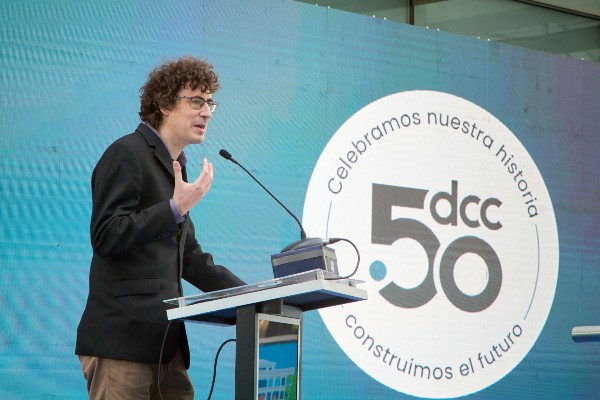 En su intervención, rindió homenaje a los fundadores y a toda la comunidad que ha formado parte de la historia del departamento. También, reflexionó sobre el rol del DCC —junto con colegas del NIC, de la universidad, y de los sectores públicos y privados— en la adopción y desarrollo de tecnologías que hoy forman parte de la vida cotidiana: “El DCC ha sido protagonista en el desarrollo y adopción nacional de tecnologías tan grandes que hoy las damos por sentadas”.