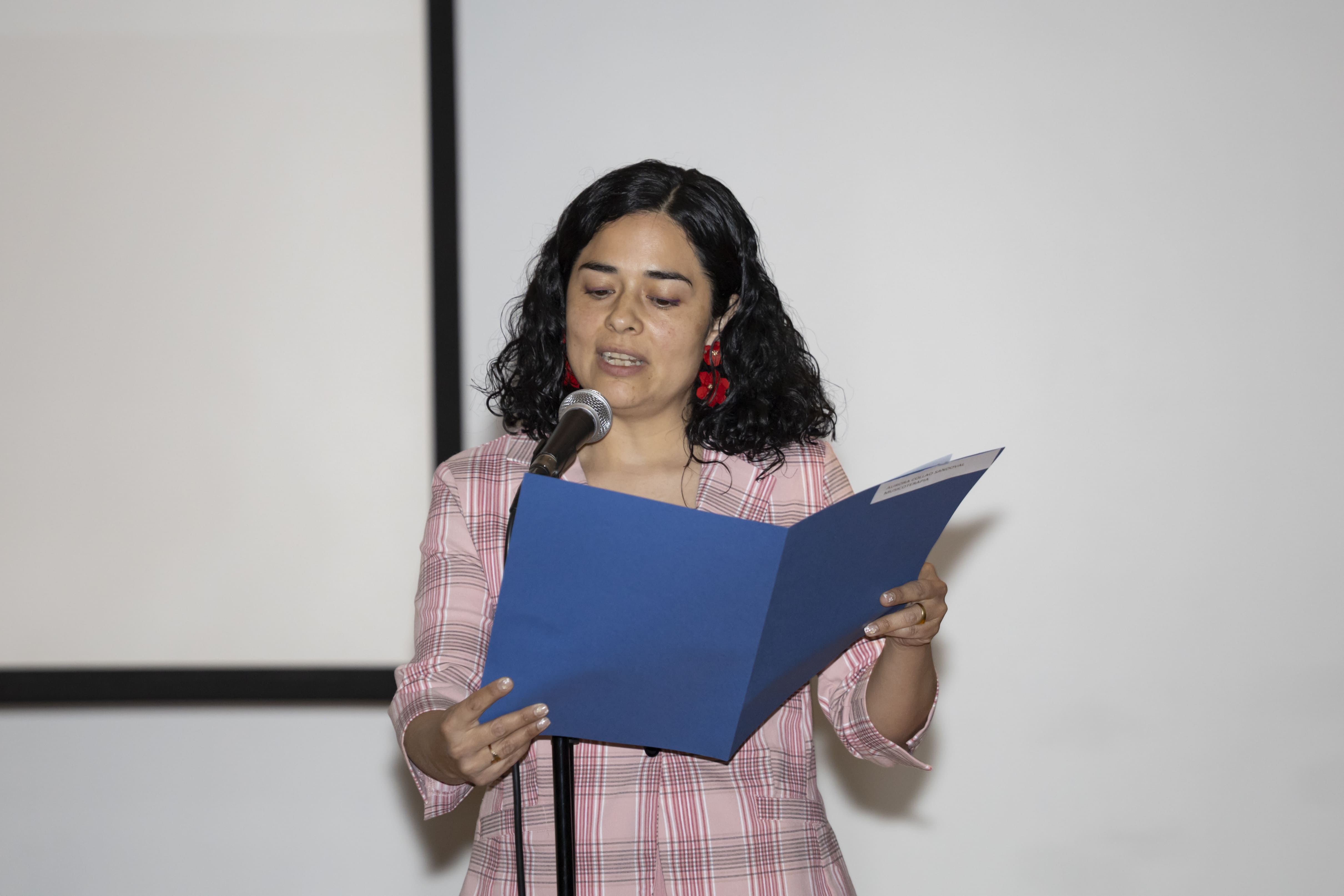 “Extendiéndoles las felicitaciones por este importante logro, comienzo esta intervención retomando parte de la misión que tiene la Facultad de Artes, que es ser cultivo de las disciplinas artísticas, humanistas y científicas, promoviendo la inter y la transdisciplina en conexión con el medio social y el campo de saberes en que está situada. Esta frase me hace mucho sentido, puesto que tiene que ver justamente con realzar la pertenencia que estos programas tienen con la Facultad. La especialización de profesionales significa, por medio de esta formación, contribuir a la vinculación de la Universidad con el medio y con el mundo. Lo que permite aportar de una manera muy concreta a abrir la visión de la Facultad y su relación con su entorno”, destacó la prof. María Elena Muñoz al inicio de la ceremonia.