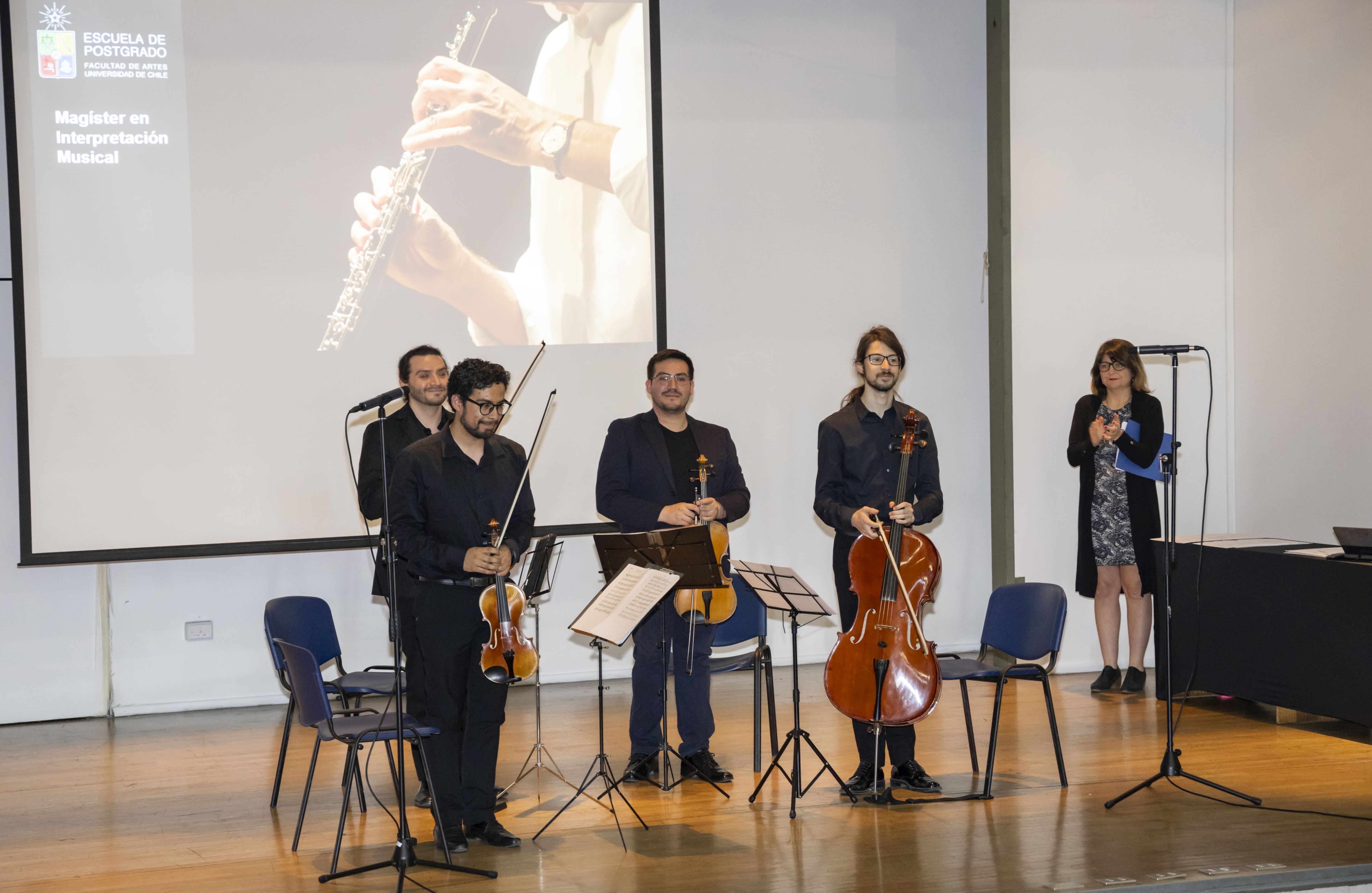 La ceremonia contempló, además, la participación de la intérprete de señas, Bárbara Aránguiz y una intervención musical a cargo del Cuarteto Pacífico Sonoro, conformado por egresados de la Licenciatura Artes con mención en Interpretación Musical, integrado por Nicolás González y Rafael Aliaga (violín), Rodrigo Olivares (viola) y Bernardo López (violonchelo). A través de la exploración de distintas sonoridades del formato de música de cámara, la agrupación interpretó las piezas La Vie en Rose de la intérprete francesa Edith Piaf, La pequeña serenata nocturna del compositor austríaco Wolfgang Amadeus Mozart y Tango el choclo, por una Cabeza y canon en re del compositor alemán Johann Pachelbel.