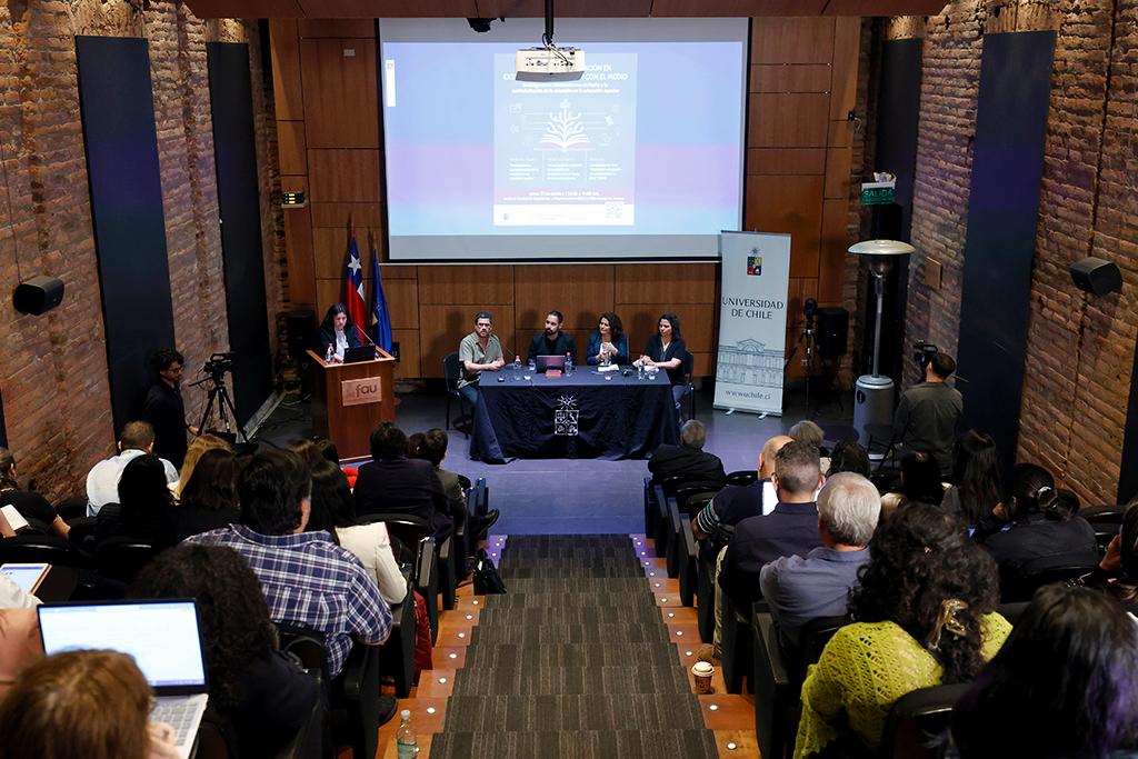 La Vicerrectoría de Extensión y Comunicaciones de la Universidad de Chile, con el apoyo de la Red de Vinculación con el Medio del Consejo de Rectores de las Universidades Estatales (CUECH), organizó el pasado lunes 27 de octubre, en la Facultad de Arquitectura y Urbanismo de la Casa de Bello, la jornada “Investigando la Vinculación con el Medio y la curricularización de la extensión en la educación superior”. La instancia convocó a alrededor de 120 personas —entre académicos(as), investigadores(as) y representantes de diversas universidades del país y otras instituciones— para reflexionar en torno al papel que cumple la extensión en la relación entre universidad y sociedad.