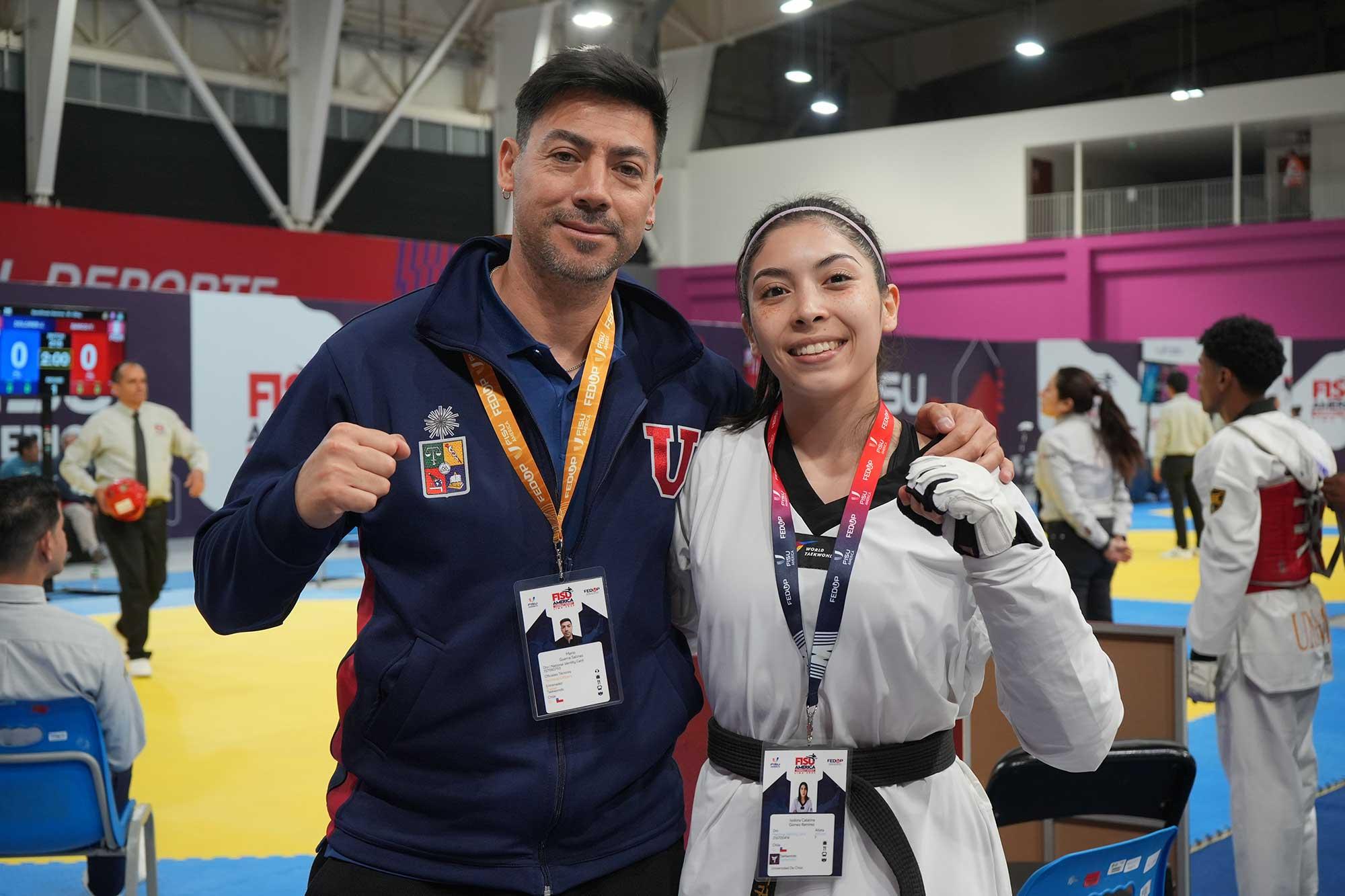 En taekwondo, la estudiante de Ingeniería Comercial Isidora Gómez se subió a lo más alto del podio en la categoría -49 kg, mientras que el estudiante de Arquitectura Gastón Vásquez obtuvo medalla de bronce en la categoría -54 kg.